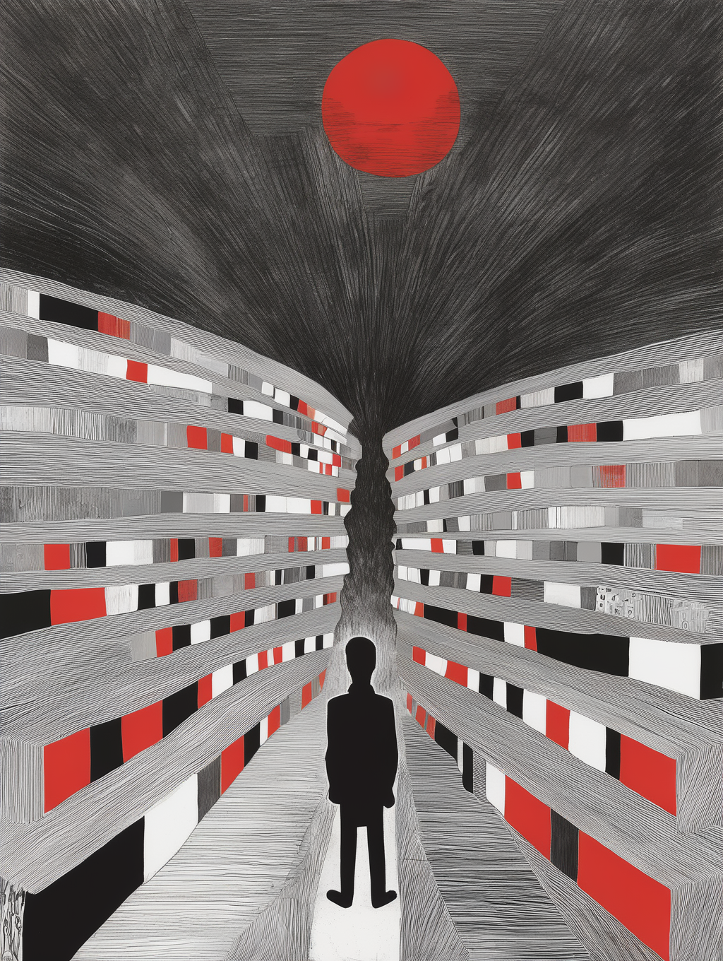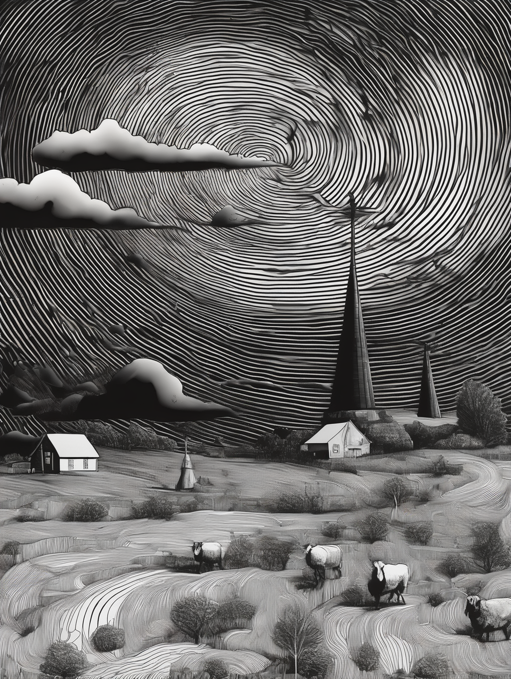 One of Donwood's most famous collaborations with Radiohead is the cover art for their album "OK Computer," which features a striking image of a heavily distorted highway interchange. The artwork perfectly captures the album's themes of technology, isolation, and modern anxiety.