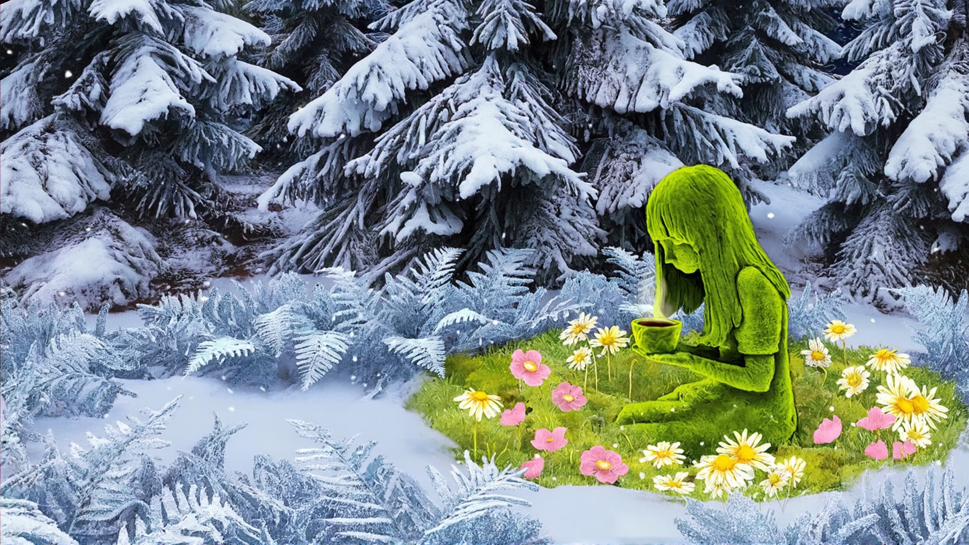 Kim Simonsson's "Moss People" are inspired by Nordic mythology, nature, and the innocence of childhood, blending human and natural elements to evoke a sense of enchantment. The moss-like texture symbolizes a connection to forests and the natural world, as if the figures belong to an unseen, magical realm. Their mysterious poses and expressions, often paired with fantastical elements, create an ethereal narrative that bridges folklore and the modern world. The sculptures invite viewers to explore themes of transformation, innocence, and humanity’s deep ties to nature.