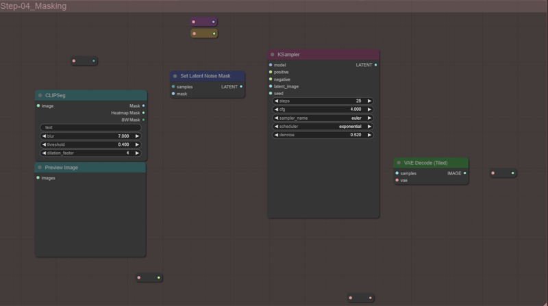 And if you want a fast inpaint just connect the rerout to the samples on the set latent noise mask node and put a text on the clipseg about the thing you want to mask and change.