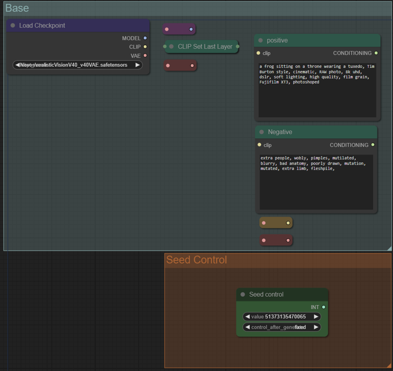 First change the models, prompts, Clip skip and seed control: