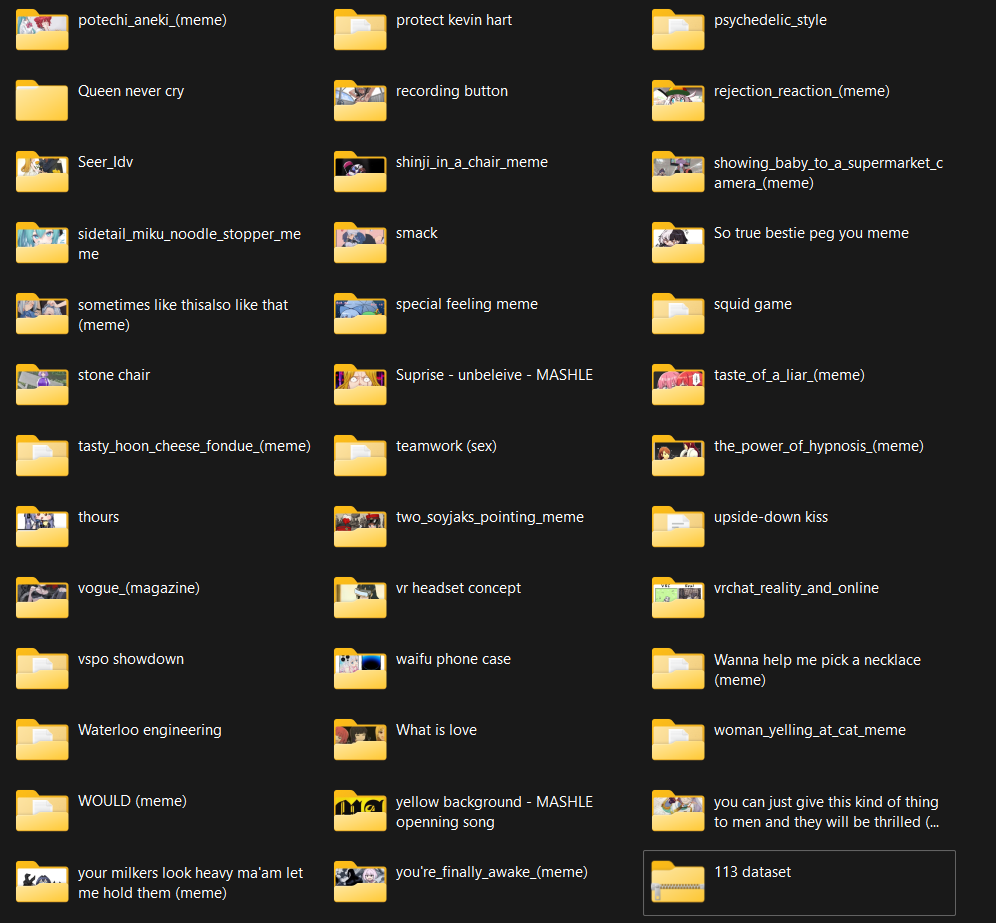All of (most of) datasets of my current untrained and failed to train LoRAs.