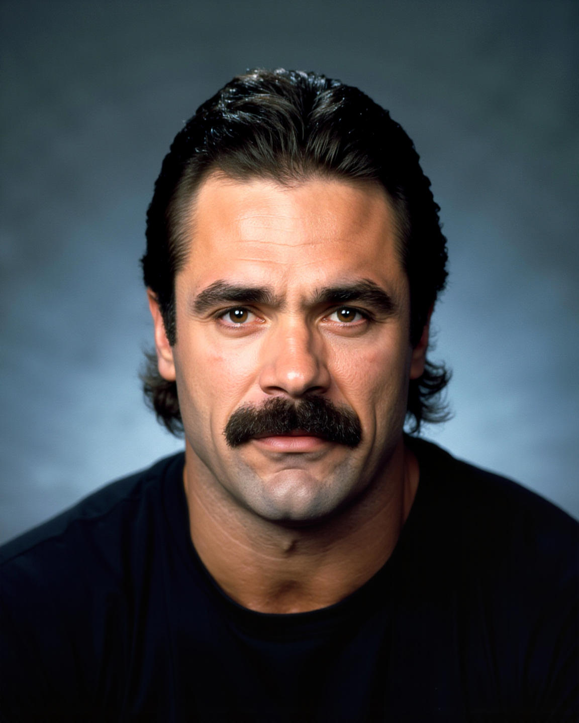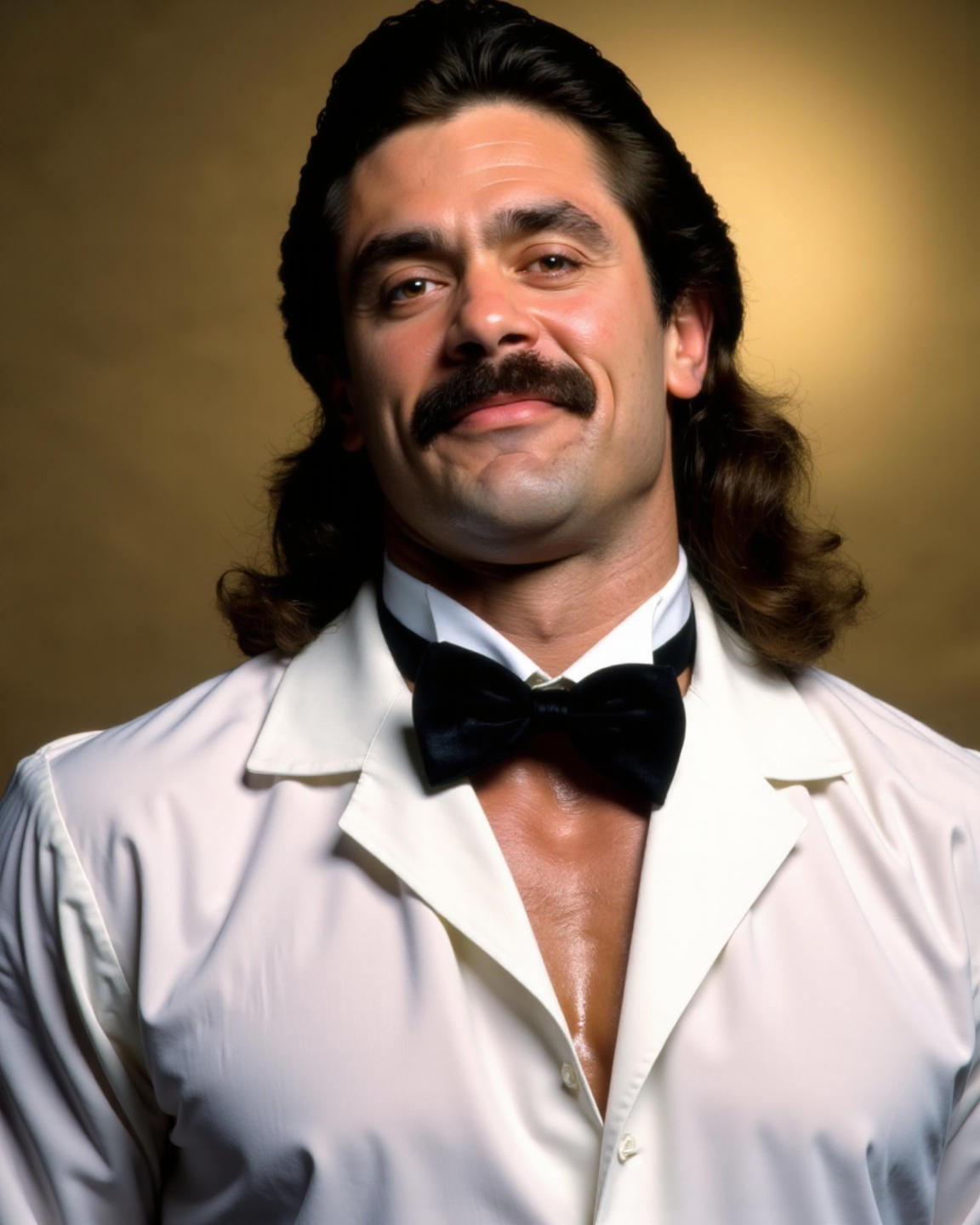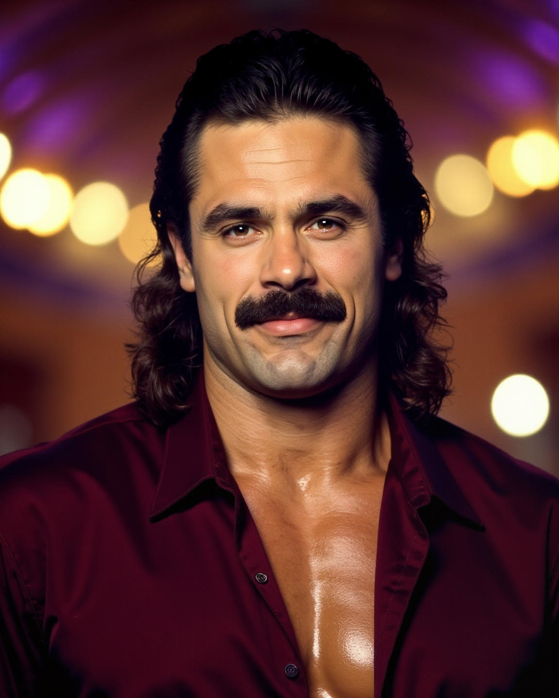 Rick Rude (real name Richard Erwin Rood) was a charismatic American professional wrestler best known for his flamboyant persona, chiseled physique, and arrogant swagger. Rising to fame in the 1980s and early 1990s, he became a staple of both WWF and WCW, often playing the seductive heel who flaunted his looks and insulted male fans while wooing their wives and girlfriends. Known for his signature airbrushed tights, swiveling hips, and smug promos, Rude captured multiple championships and left a lasting legacy as one of wrestling’s most iconic showmen. His blend of vanity, physical prowess, and over-the-top charisma made him unforgettable in and out of the ring.