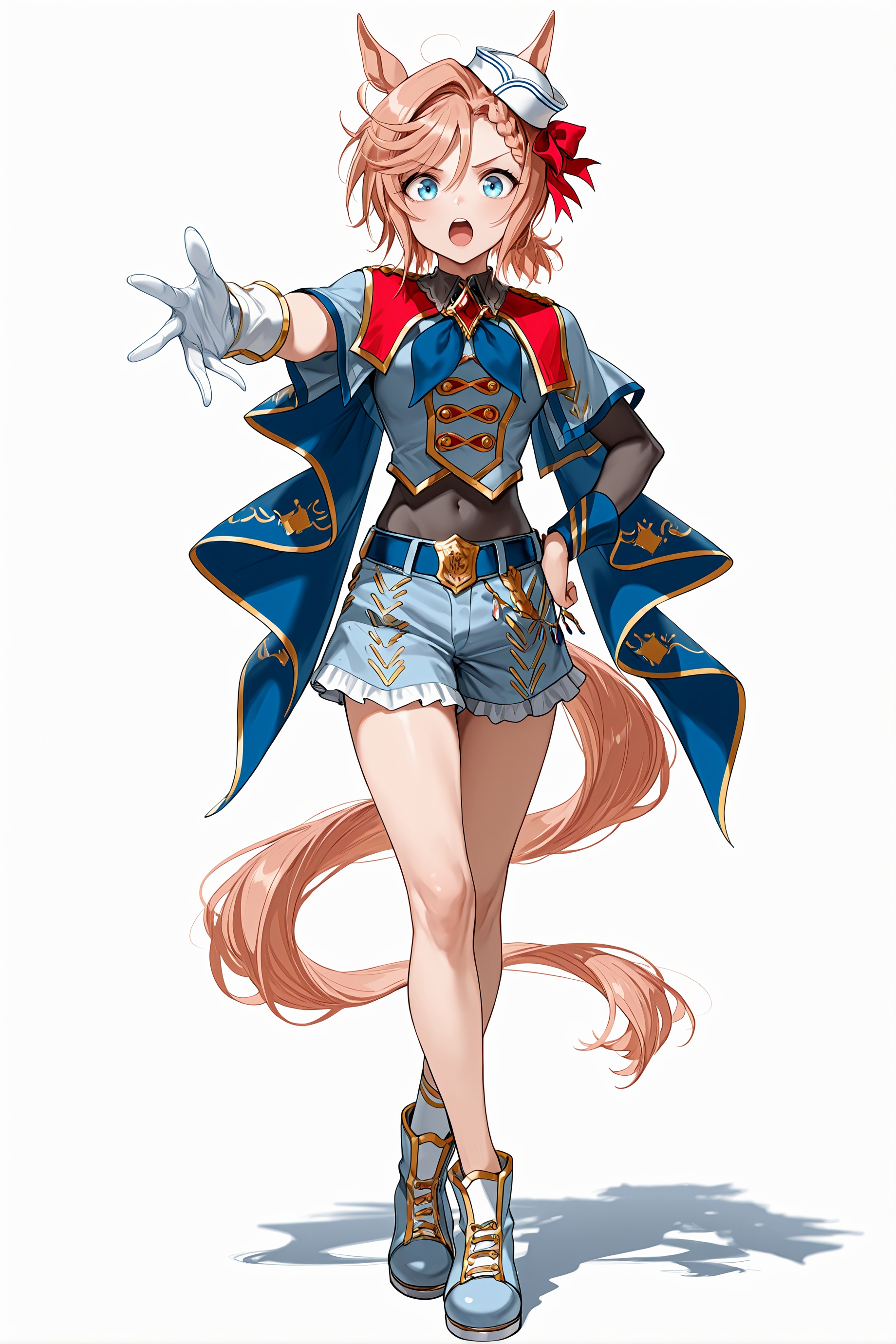 venus paques \(umamusume\), horse tail, horse girl, dixie cup hat, single glove, white gloves, belt, single sock, shoes,