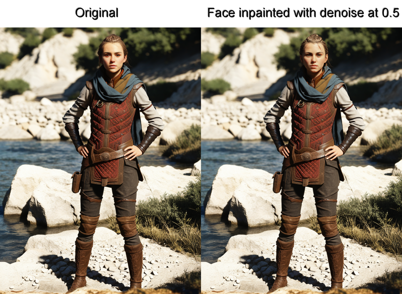 For a full body image, i recommend inpainting her face with 0.4~0.5 denoise strength to have better results.