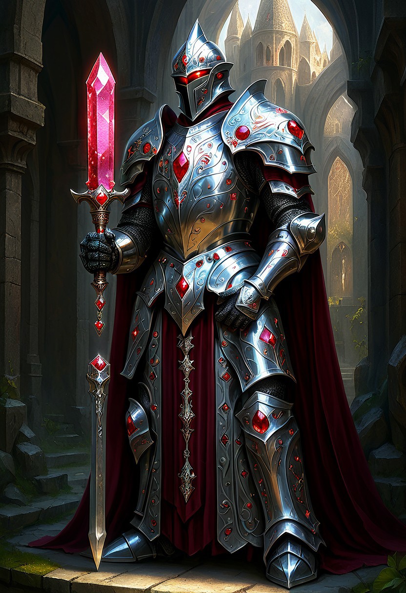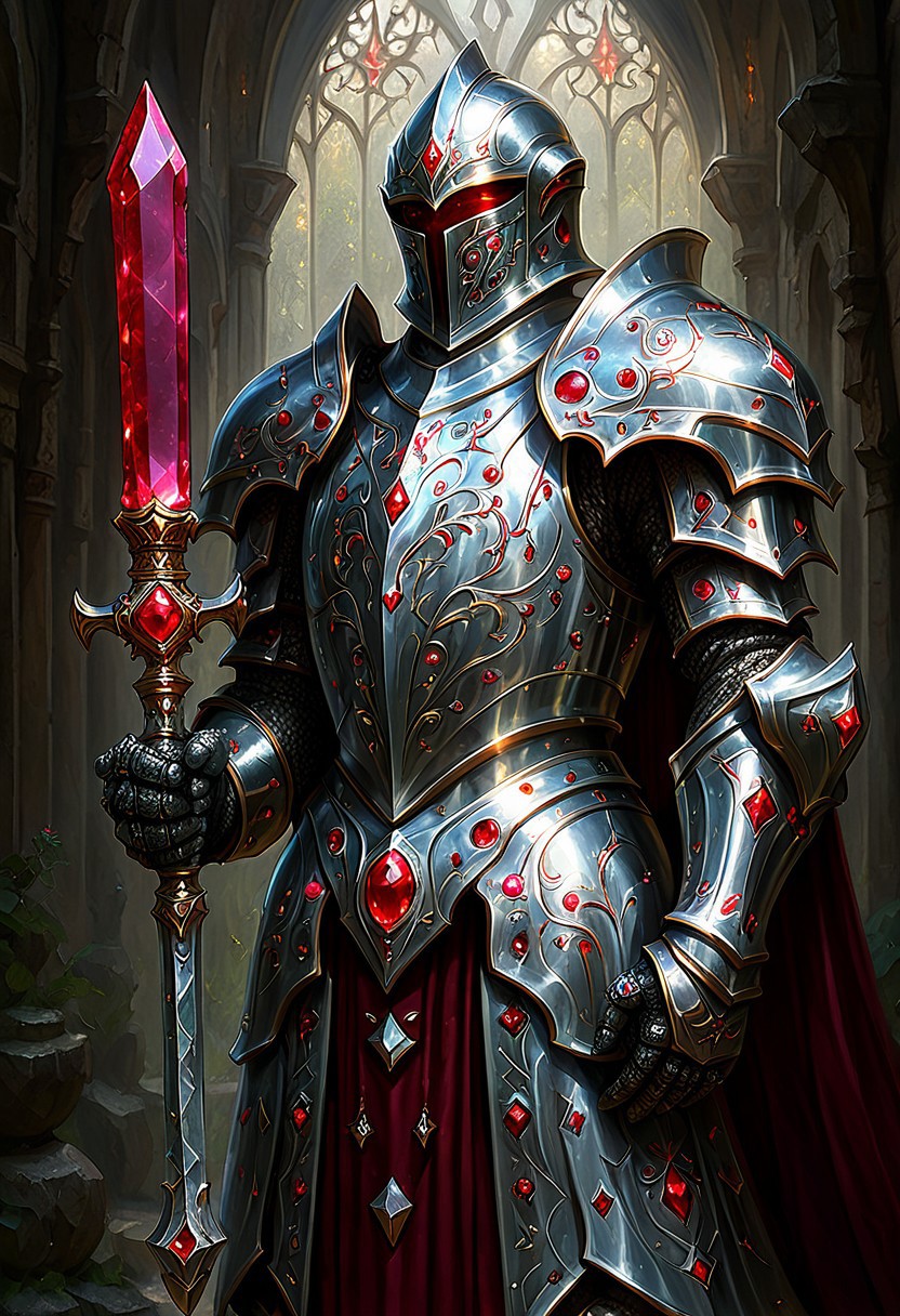 a knight in polished silver armor, adorned with glowing gemstones, infusedglow, cinematic lighting, fantasy art a crystal scepter glowing with magical energy, embedded in ancient stone, infusedglow, ultra-detailed a treasure hoard of gold coins, relics, and magical gemstones, infusedglow, intricate highlights๐ธ Try weights around 0.6 to 1.0 depending on strength desired.