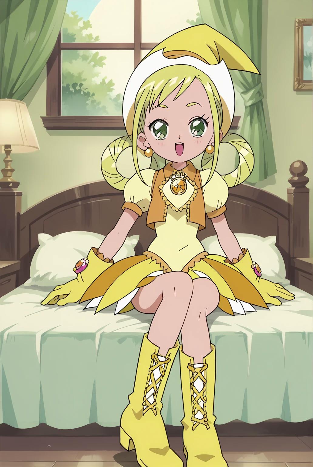 Basic: momoko-asu, witch, 1girl, green eyes, blonde hair, hair rings