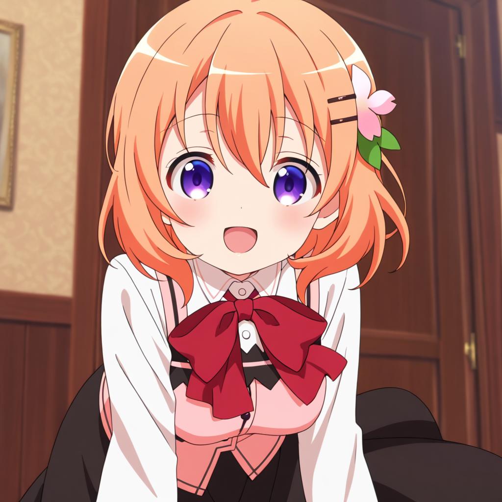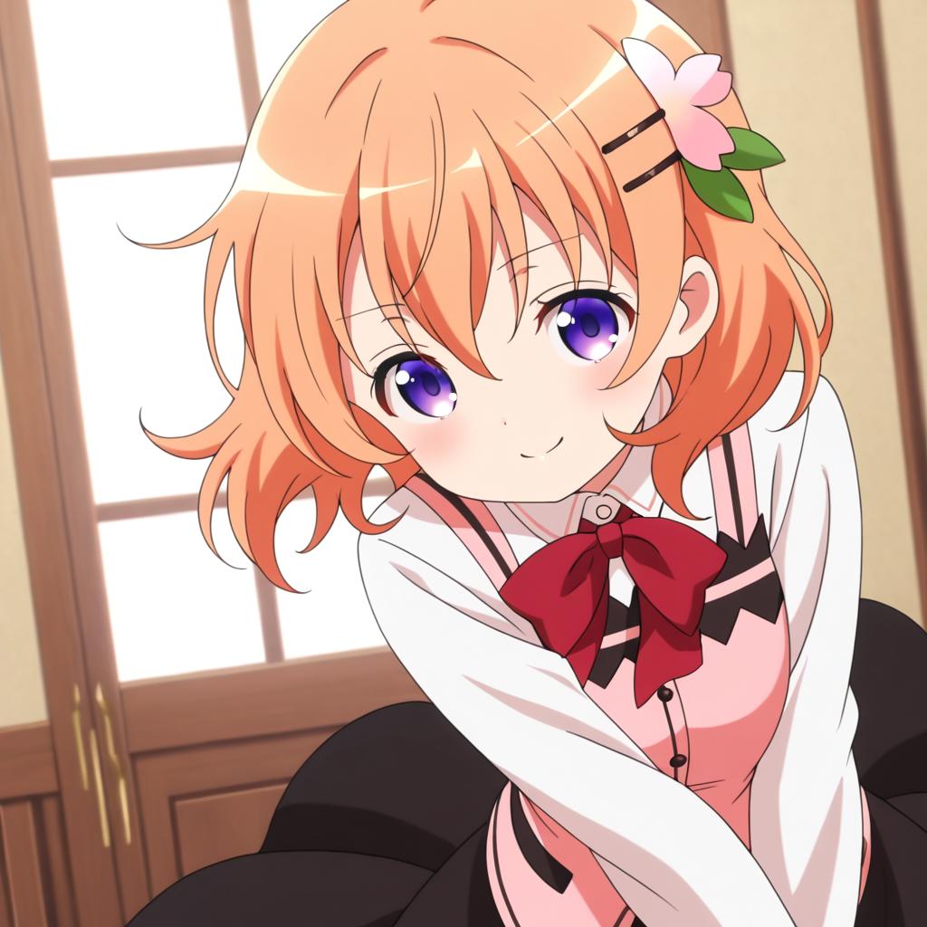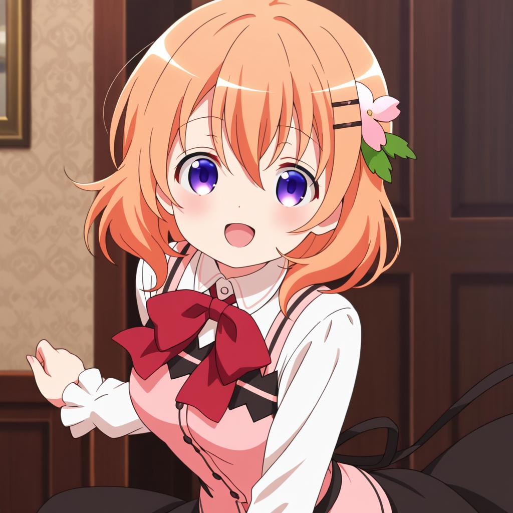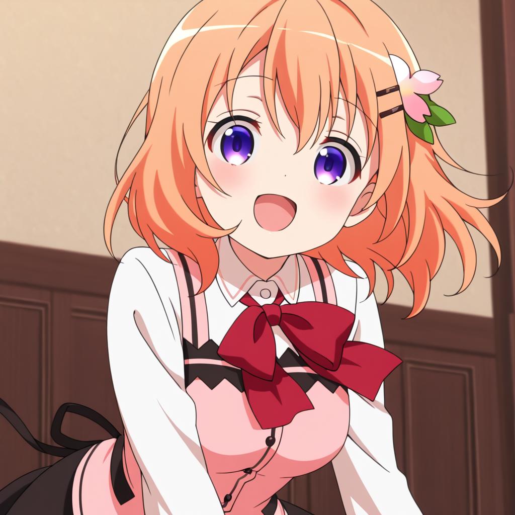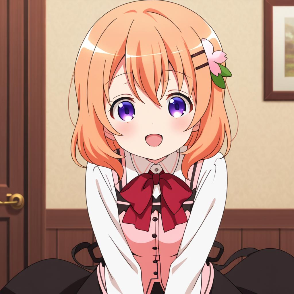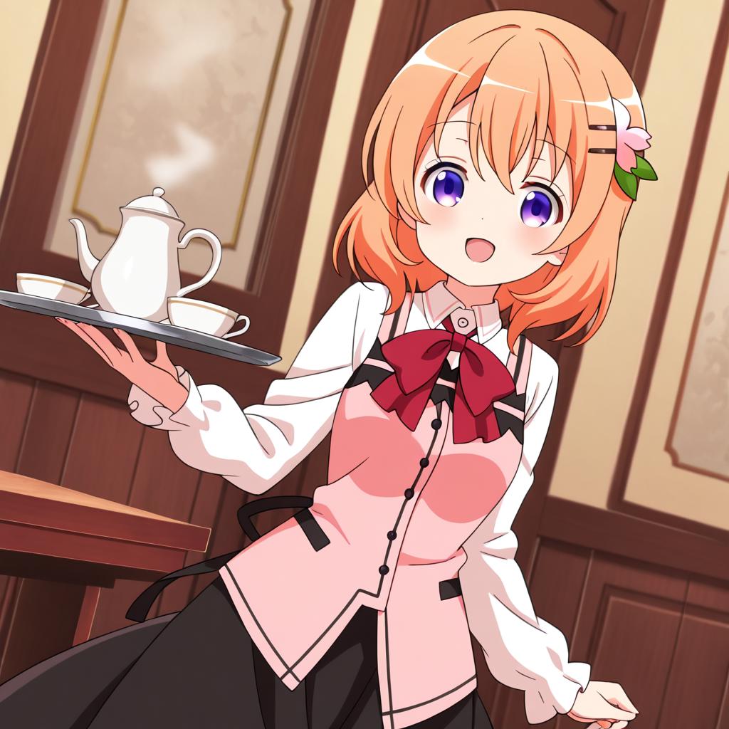 Hoto kokoa (gochuumon wa usagi desu ka?),orange hair,purple eyes,medium hair,medium breast,hair ornament