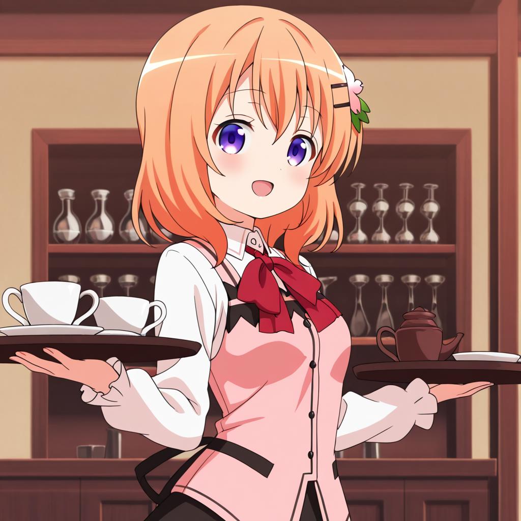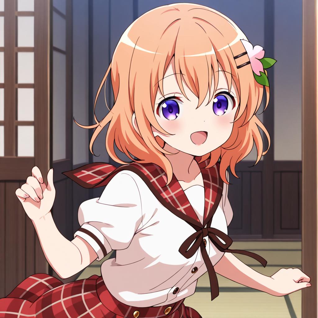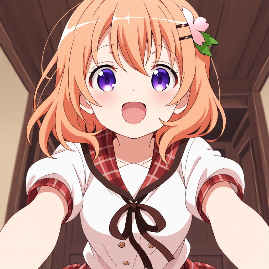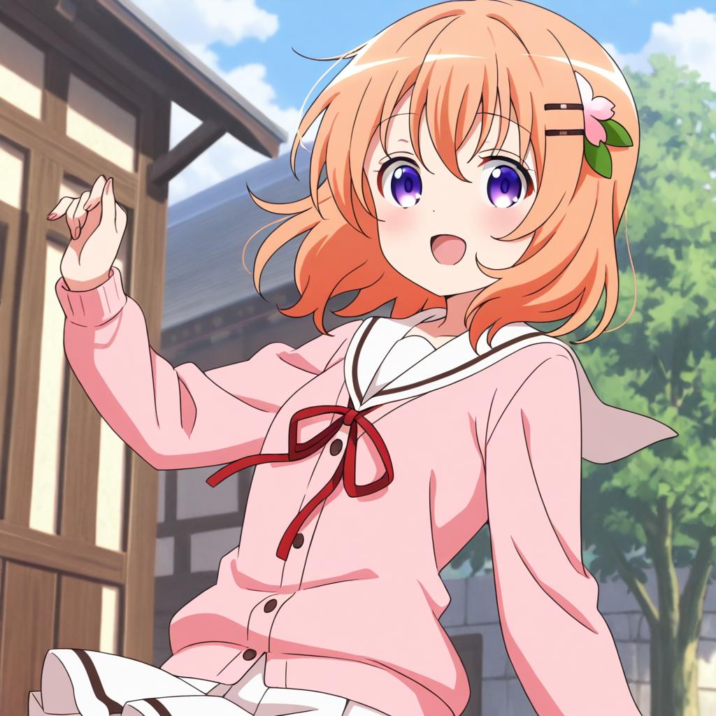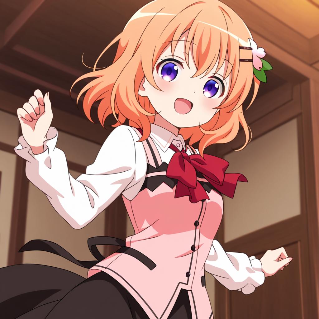Hoto kokoa (gochuumon wa usagi desu ka?),orange hair,purple eyes,medium hair,medium breast,hair ornament