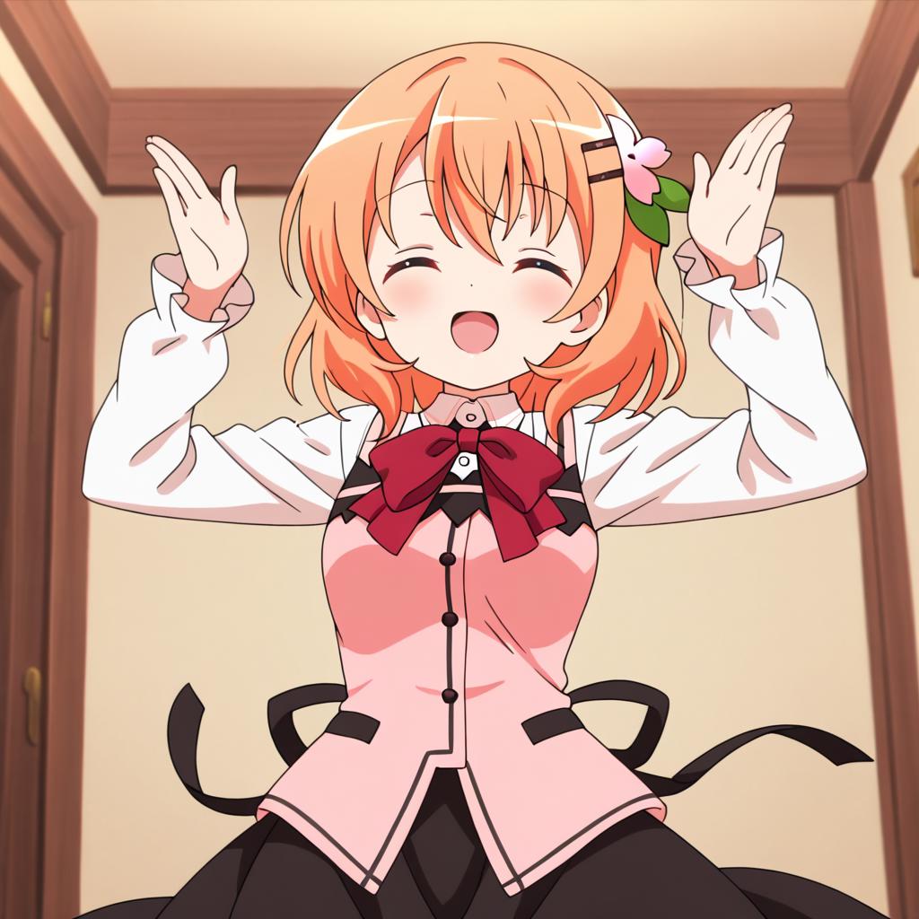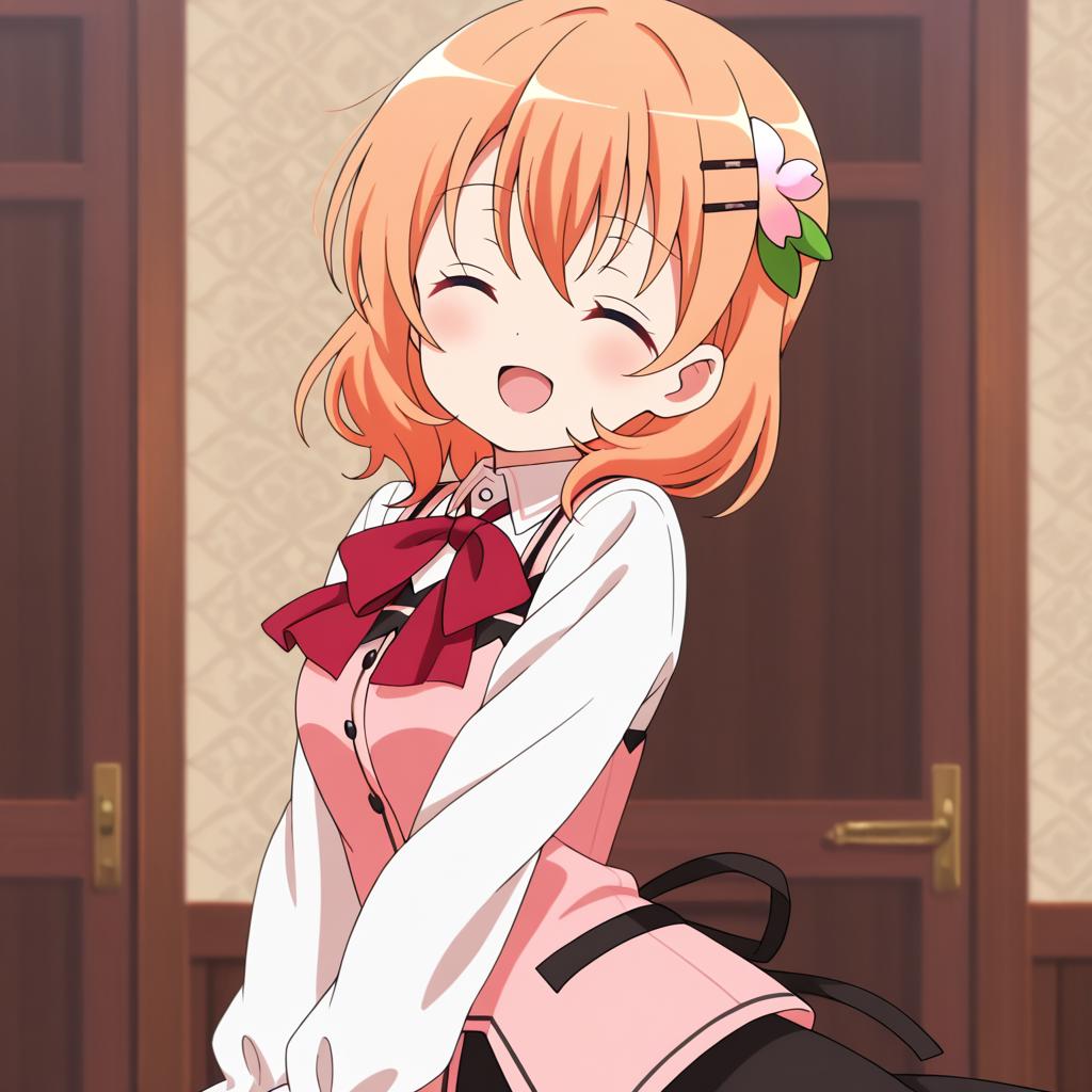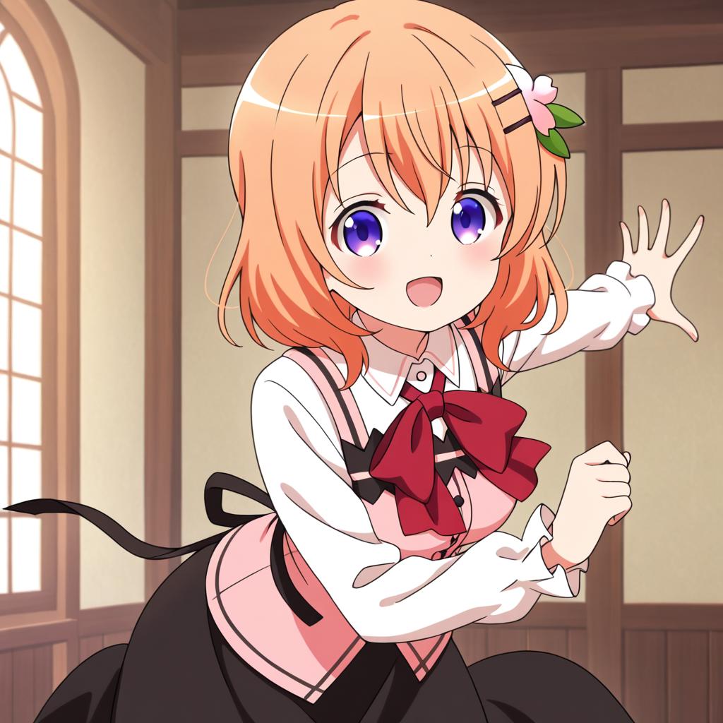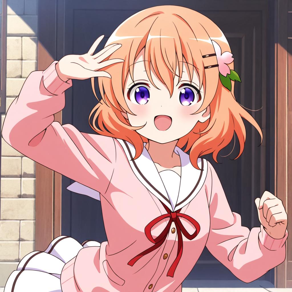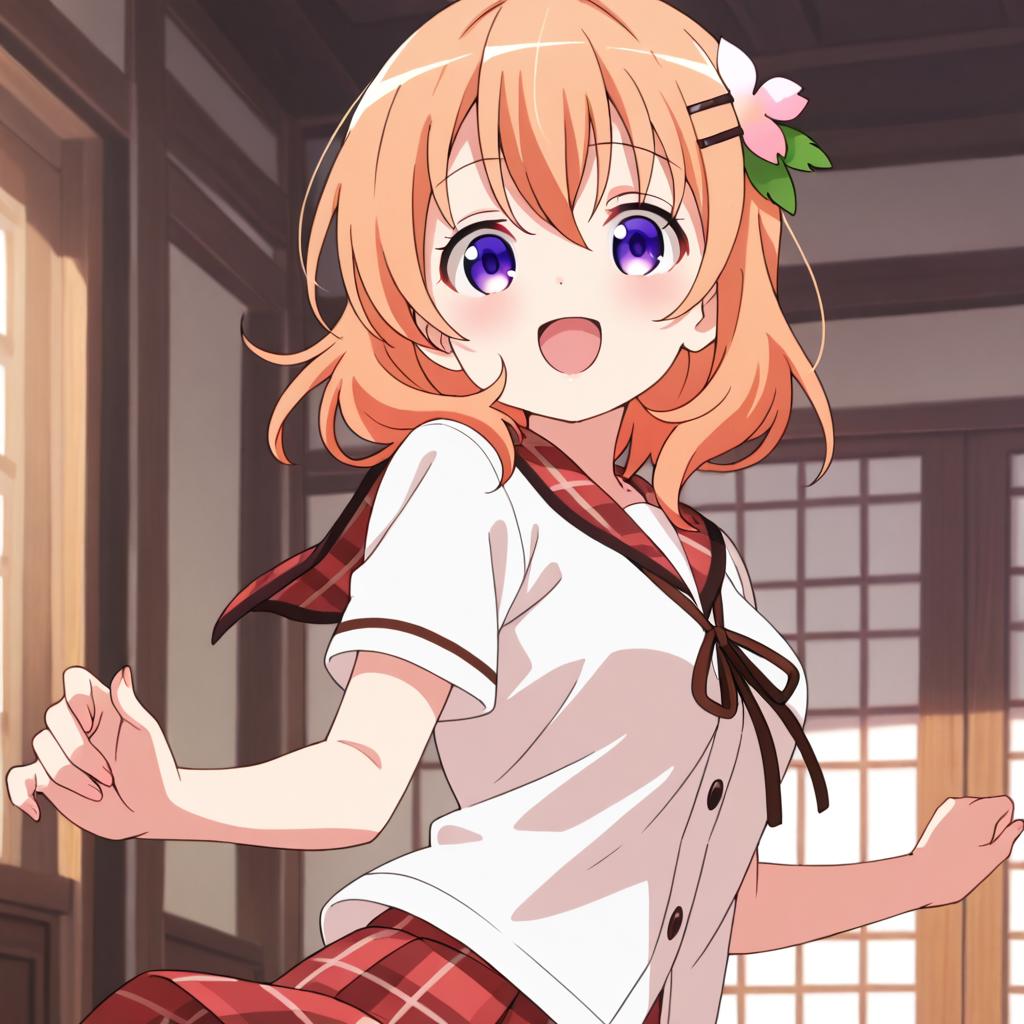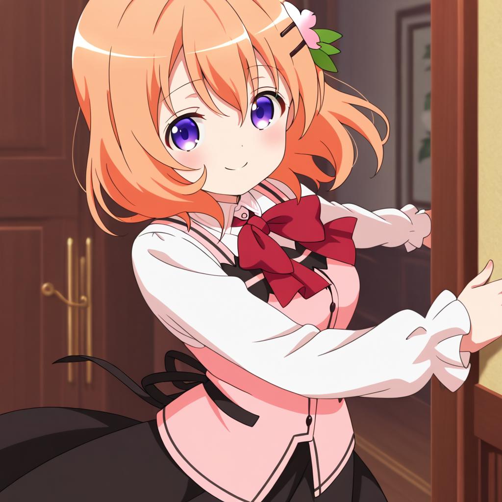 Hoto kokoa (gochuumon wa usagi desu ka?),orange hair,purple eyes,medium hair,medium breast,hair ornament