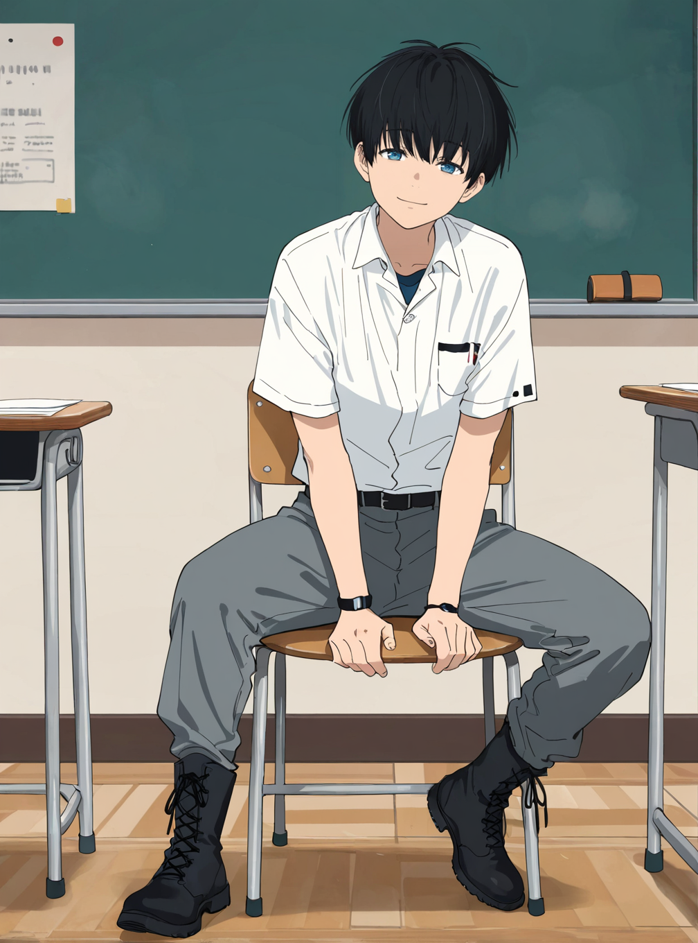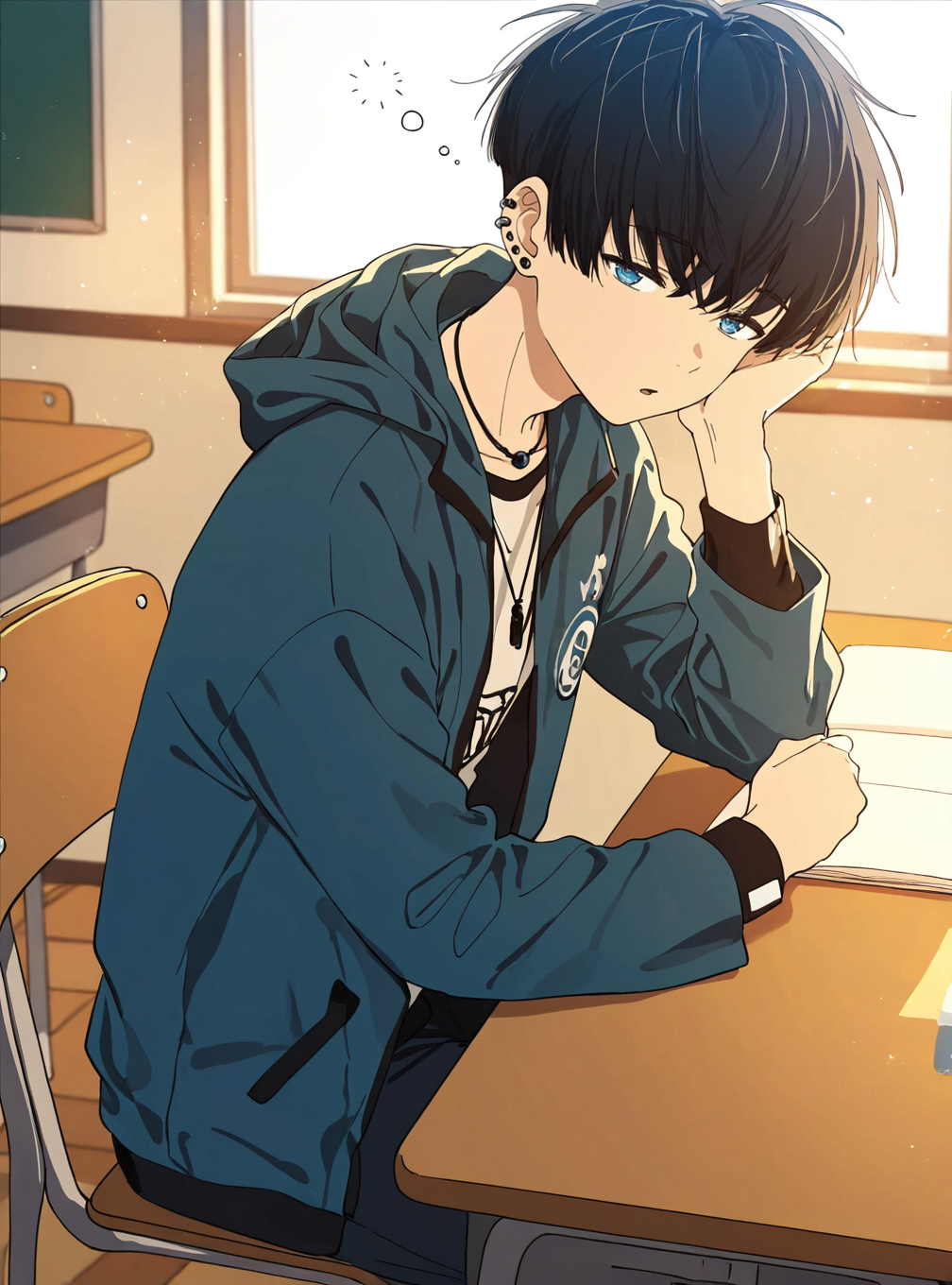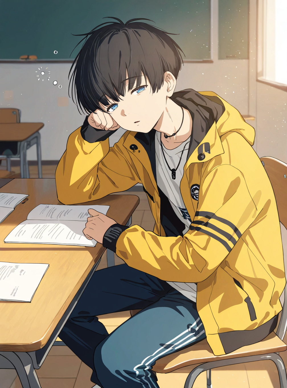 xu_feizai, black hair, blue eyes, bangs, short hair