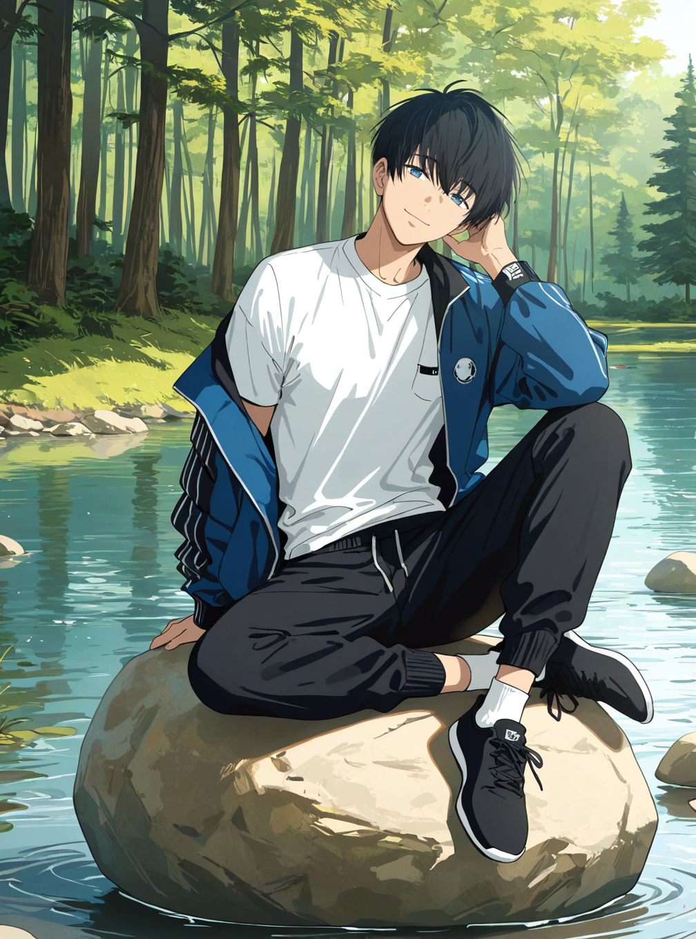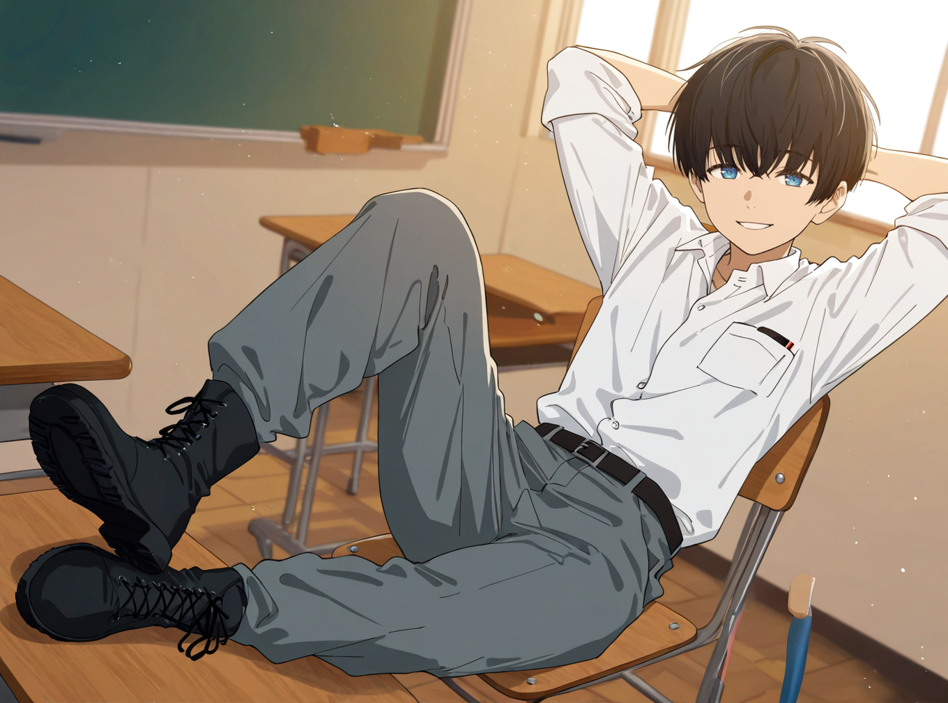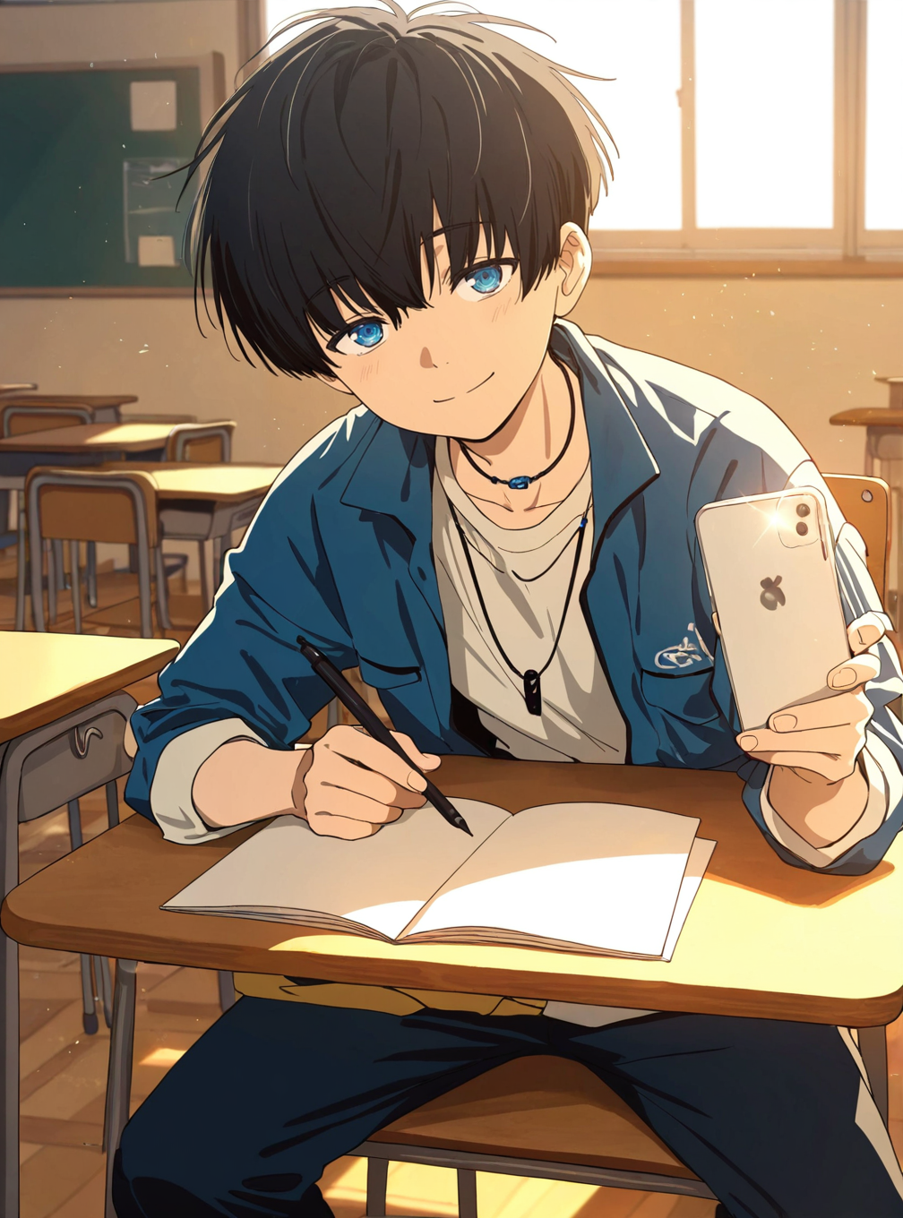 xu_feizai, black hair, blue eyes, bangs, short hair