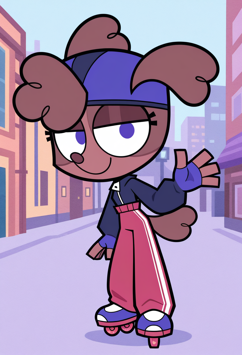 Retrain of my Pony LoRA of Zoe, the multi-talented rollerblader from New Lennium City by artist AJMarekArt, for Illustrious.