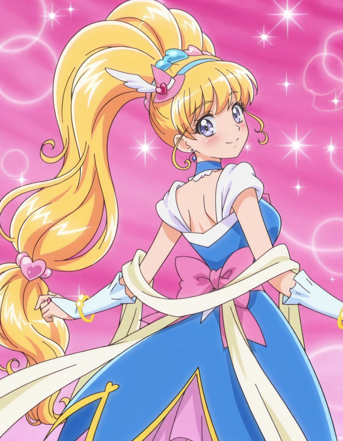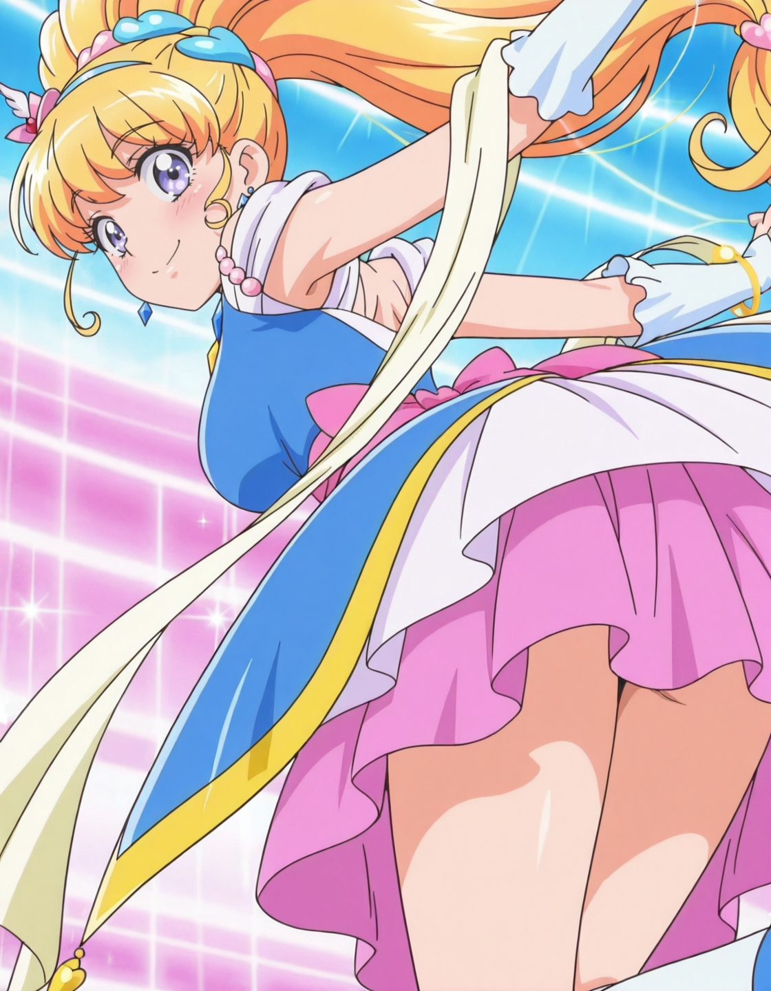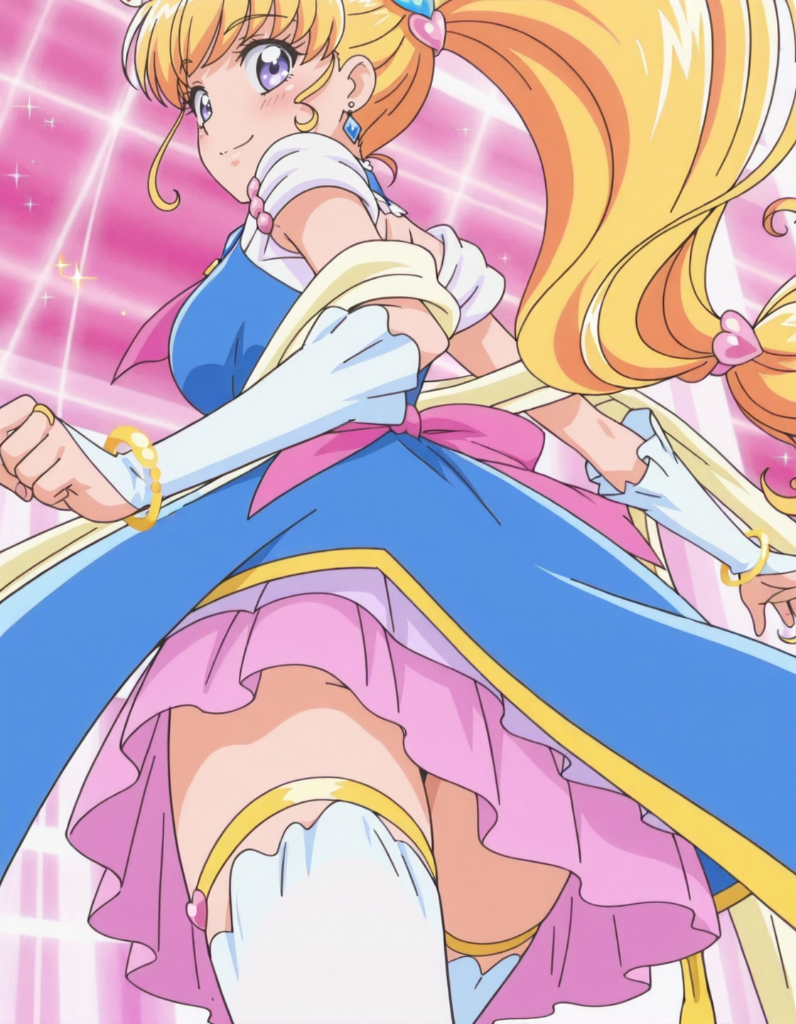 anime screencap, solo,1girl,curemiraclesapphire,miraclesapphirecostume,<lora:curemiraclesapphire_IL:0.8> high definition,amazing quality,best quality,very aesthetic,masterpiece,absurdres,