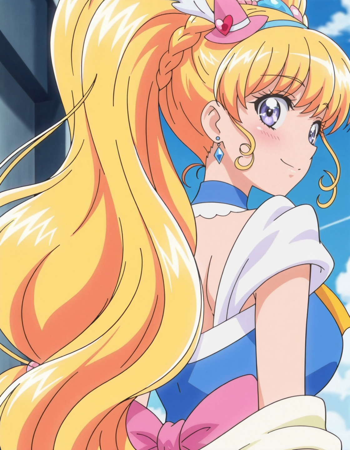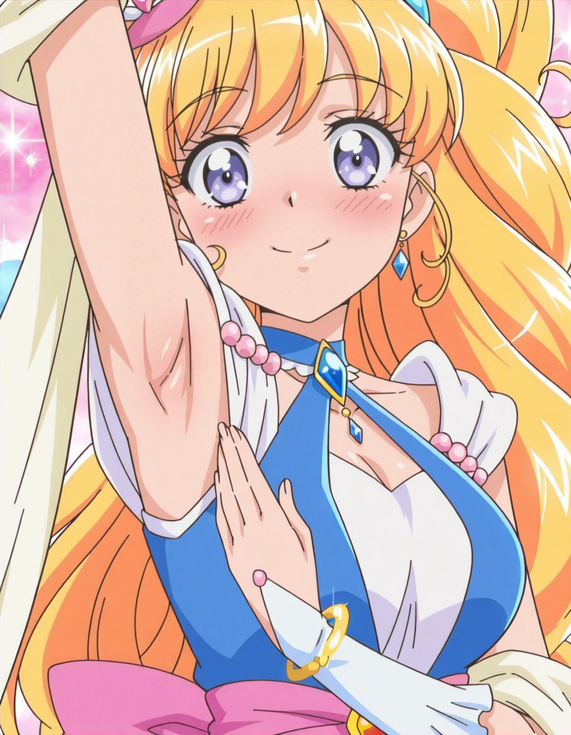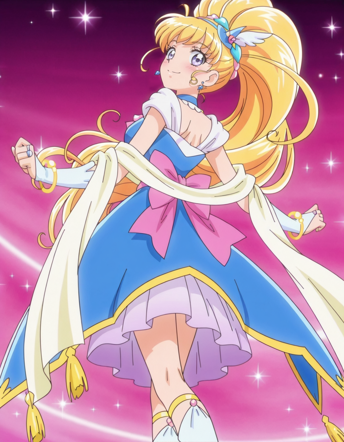 anime screencap, solo,1girl,curemiraclesapphire,miraclesapphirecostume,<lora:curemiraclesapphire_IL:0.8> high definition,amazing quality,best quality,very aesthetic,masterpiece,absurdres,