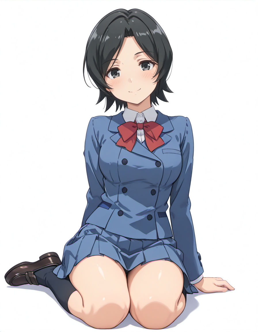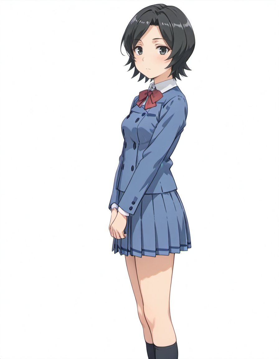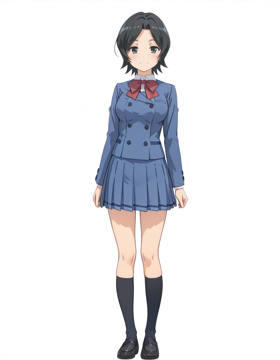 目は設定では gray eyes,  だとは思いますが、制服の色がgrayに引っ張られることがあるため black eyes, にしてあります。