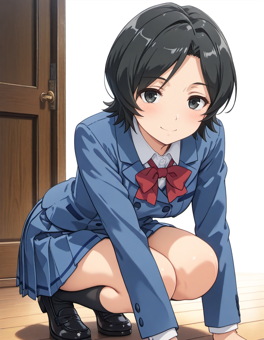 hachisuka tomoe, short hair, black hair, black eyes,