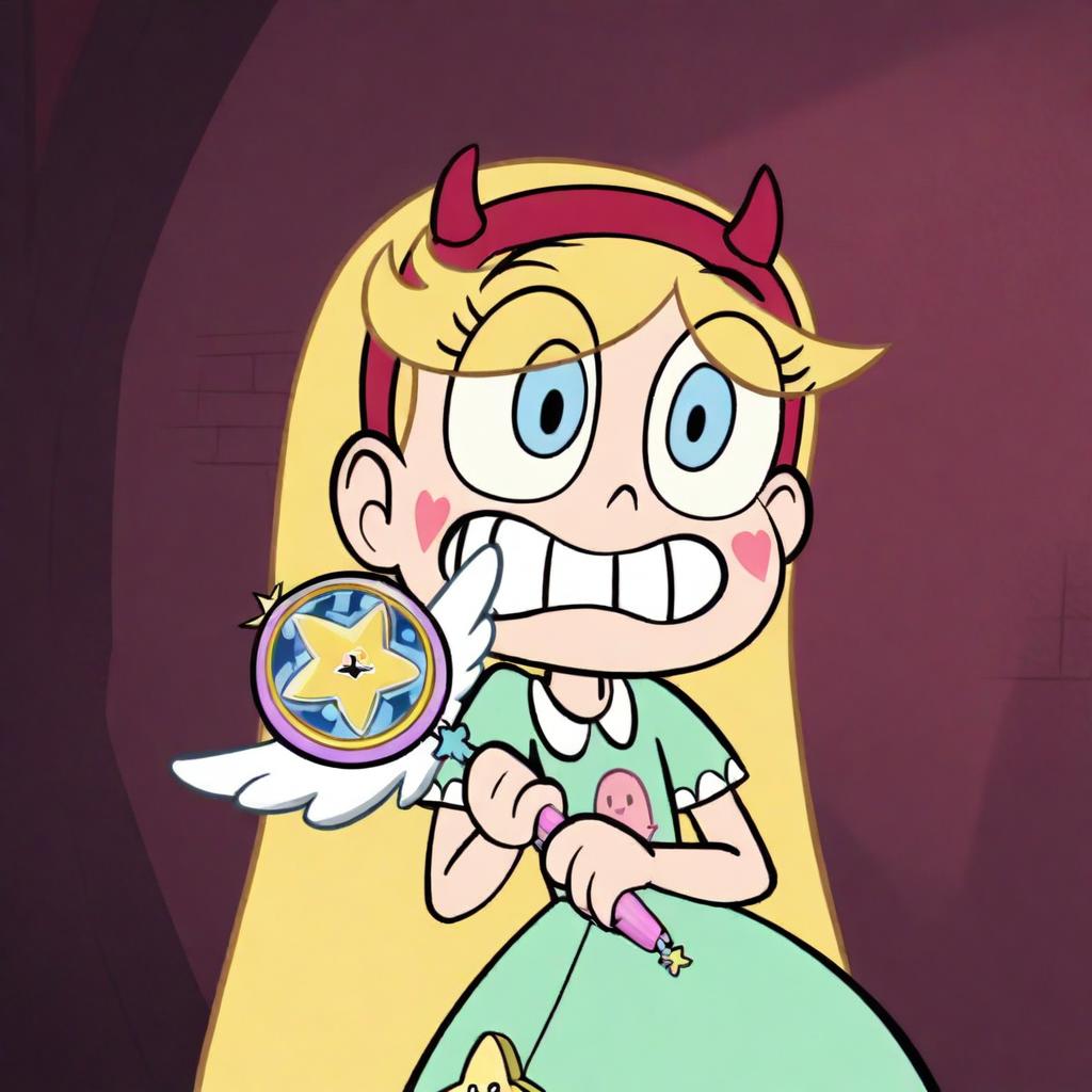 holding magic wand, star on wand, wings on wand, crown on wand,