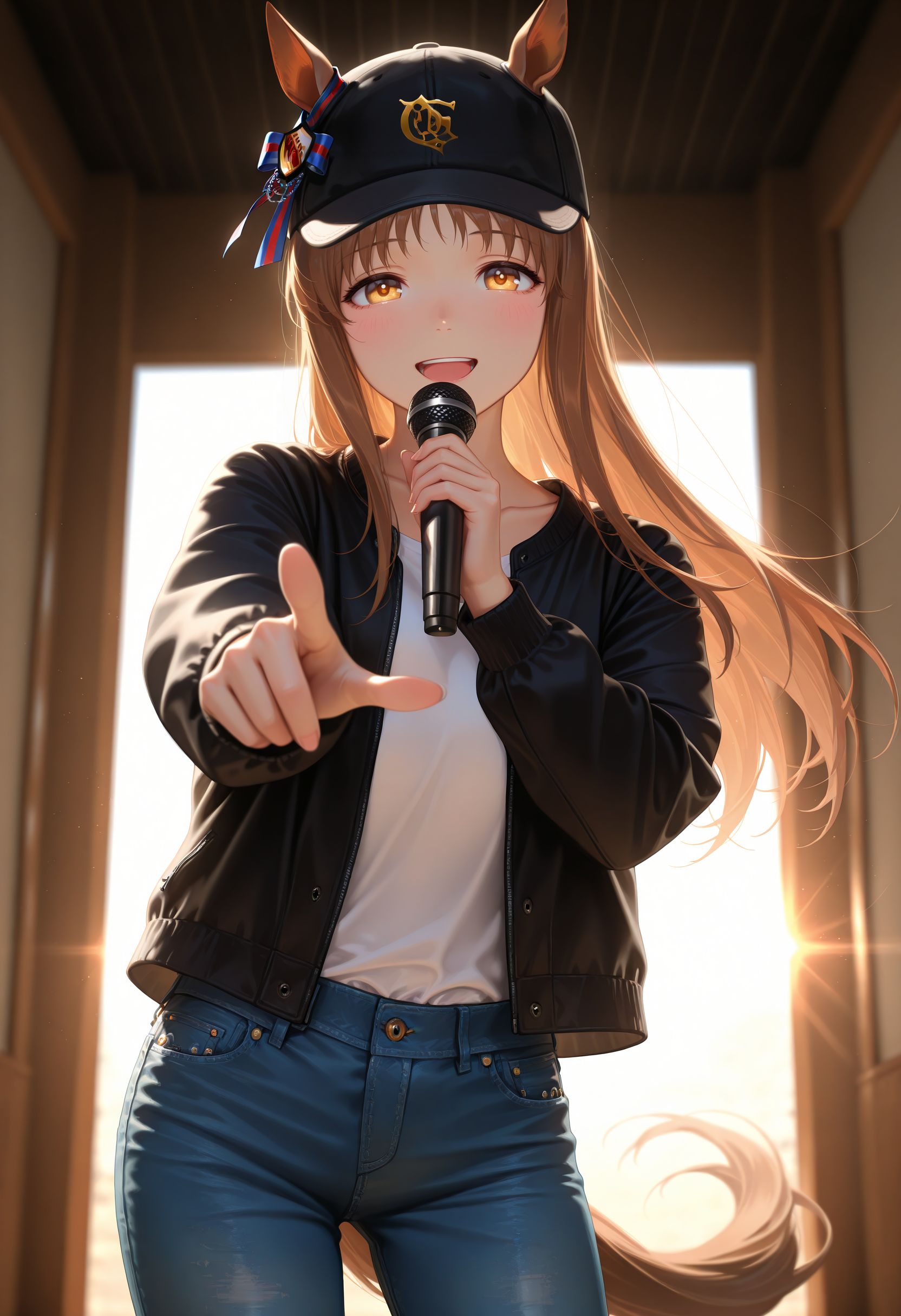 Trigger: 1girl, long hair, brown hair, multicolored hair, ribbon, horse ears, horse girl, horse tail,