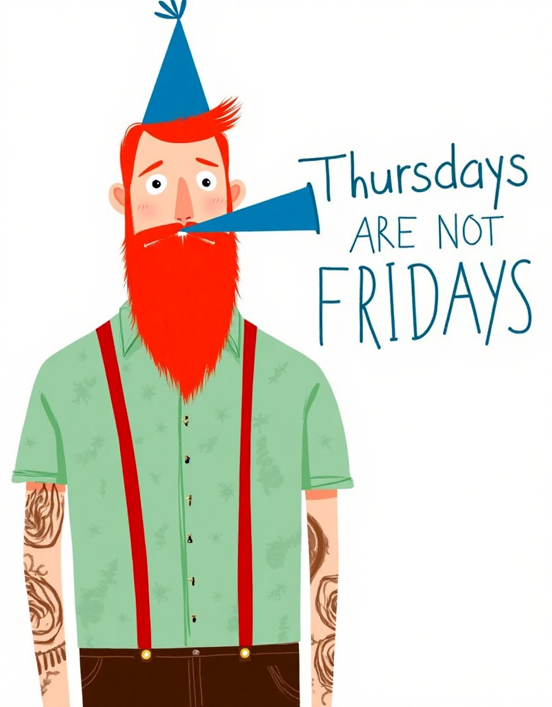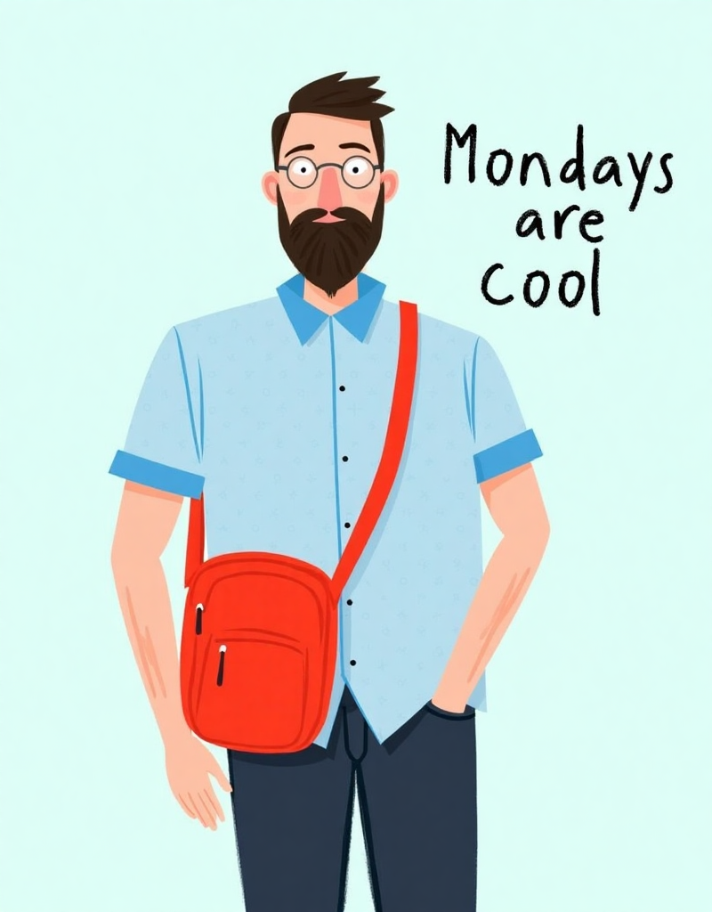 Cartoon - style illustration, a man with a big beard, wearing a checkered shirt, holding a coffee cup, cozy home setting.