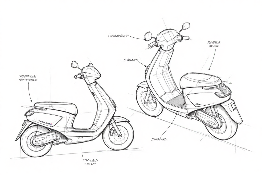 It has strong product sketching capabilities and is suitable for various product design and drawing scenarios such as electric scooters, handles, and footwear.