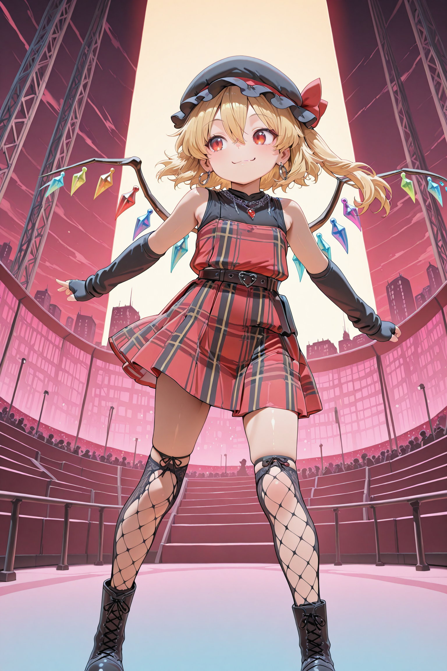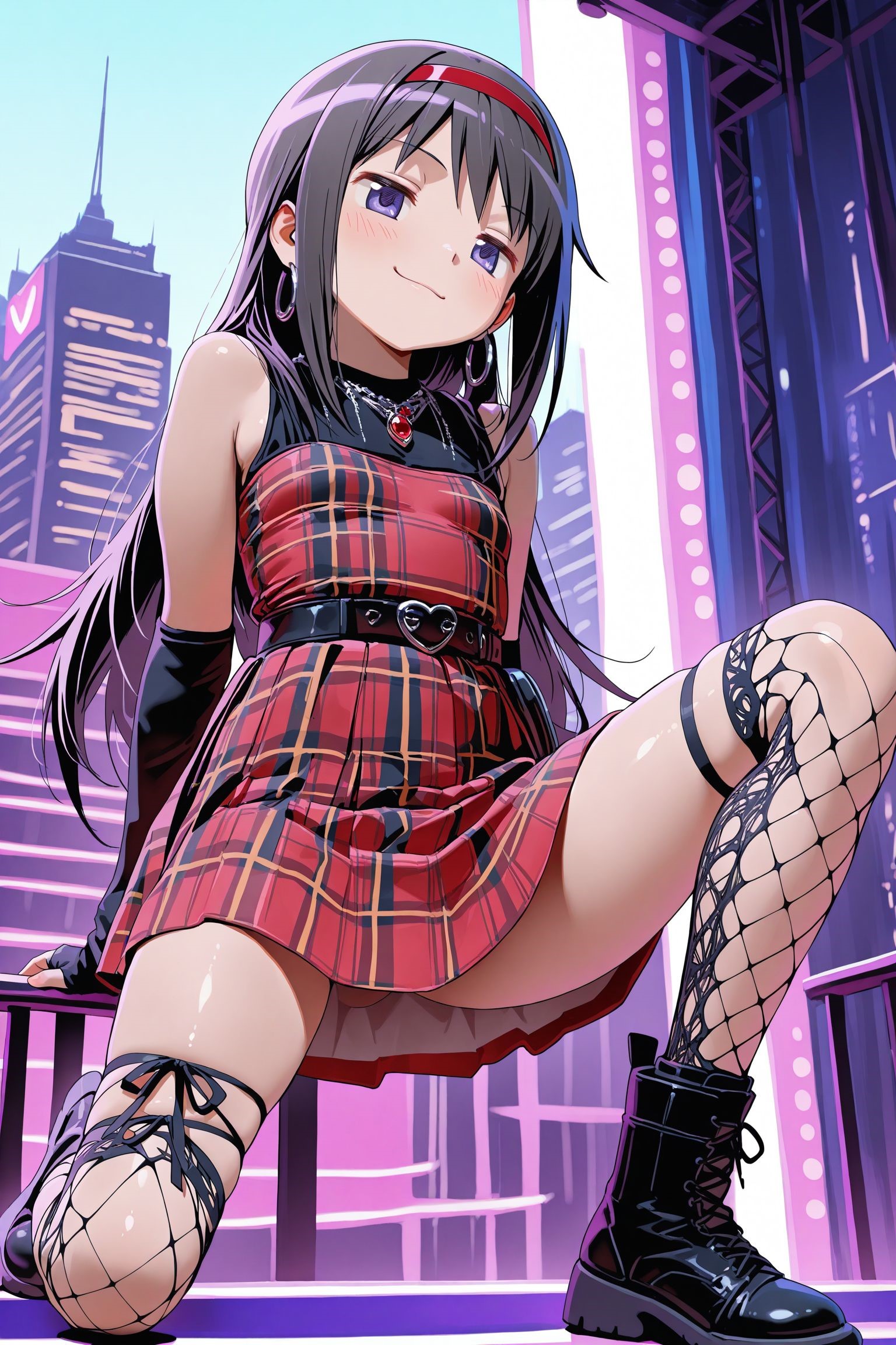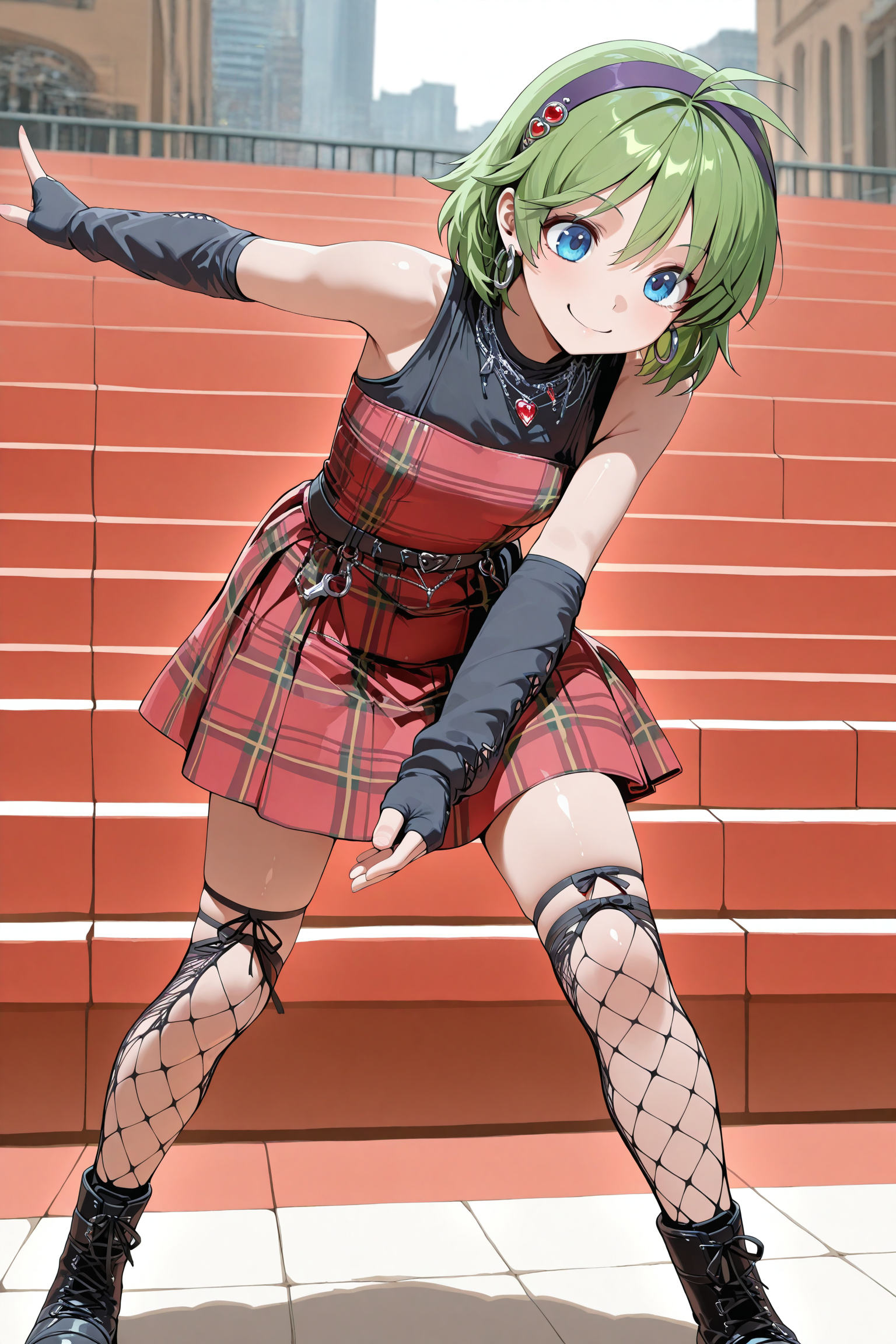 このLoRAは、赤いタータンチェック柄のゴシックパンク風ワンピース衣装を再現します。