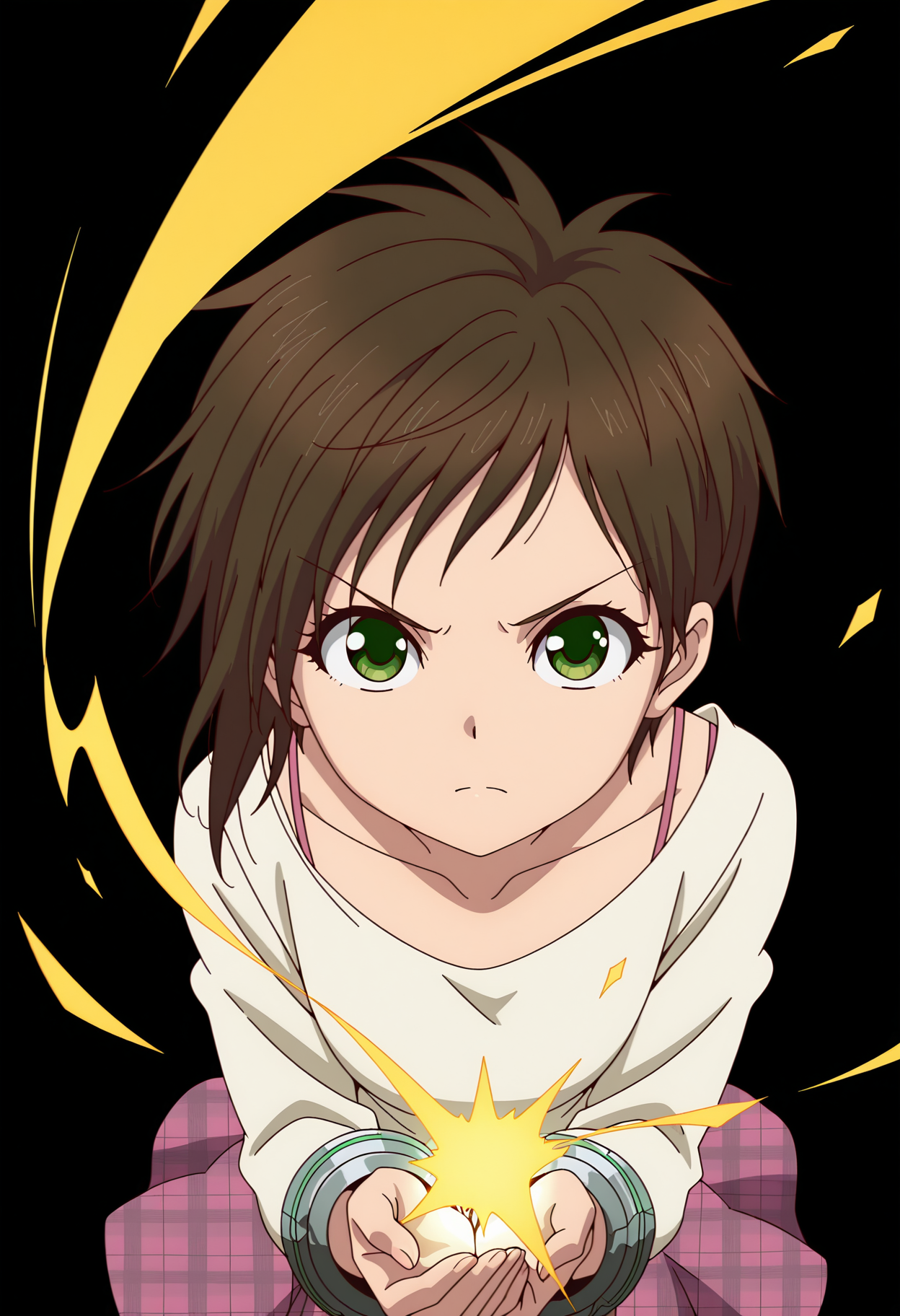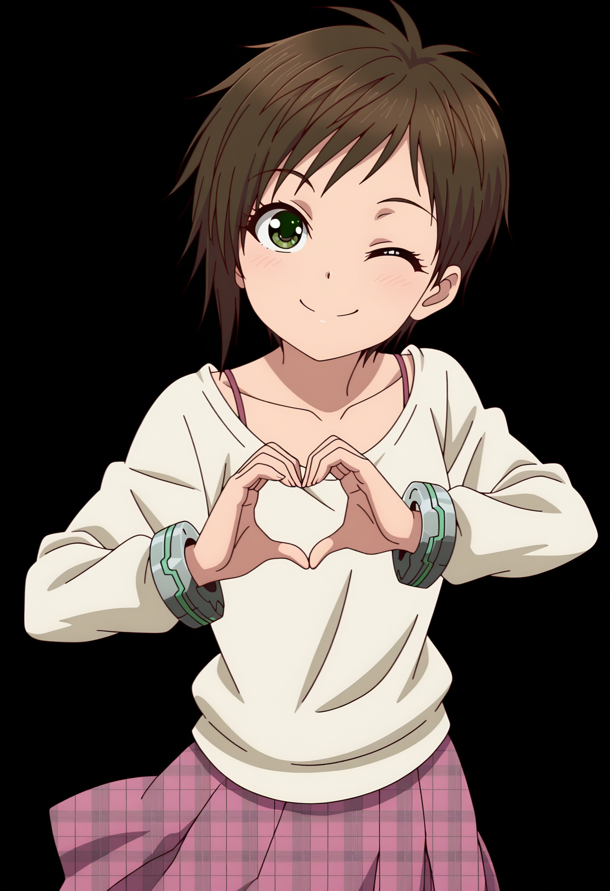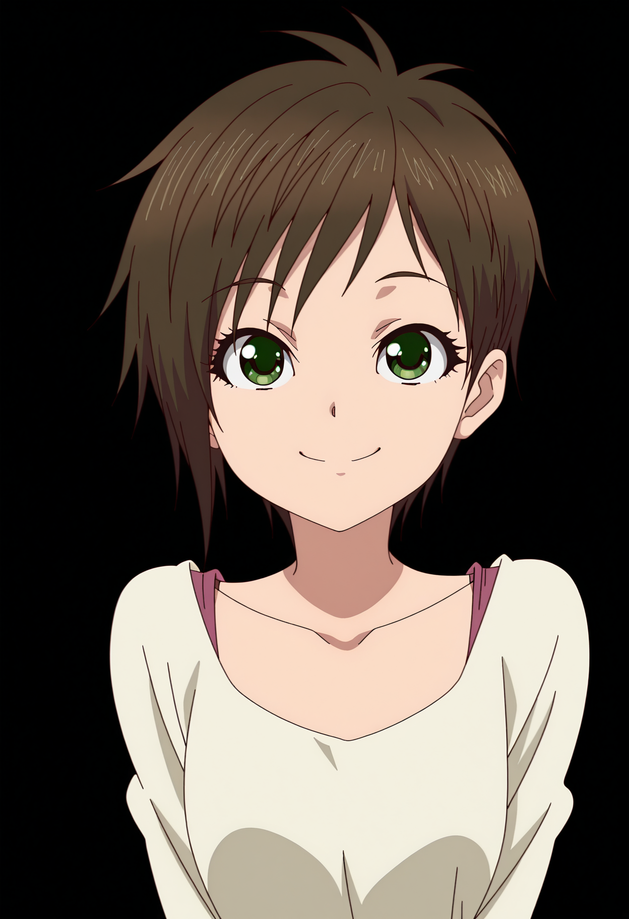 1girl, solo, hareka ninomiya, short hair, brown hair, green eyes