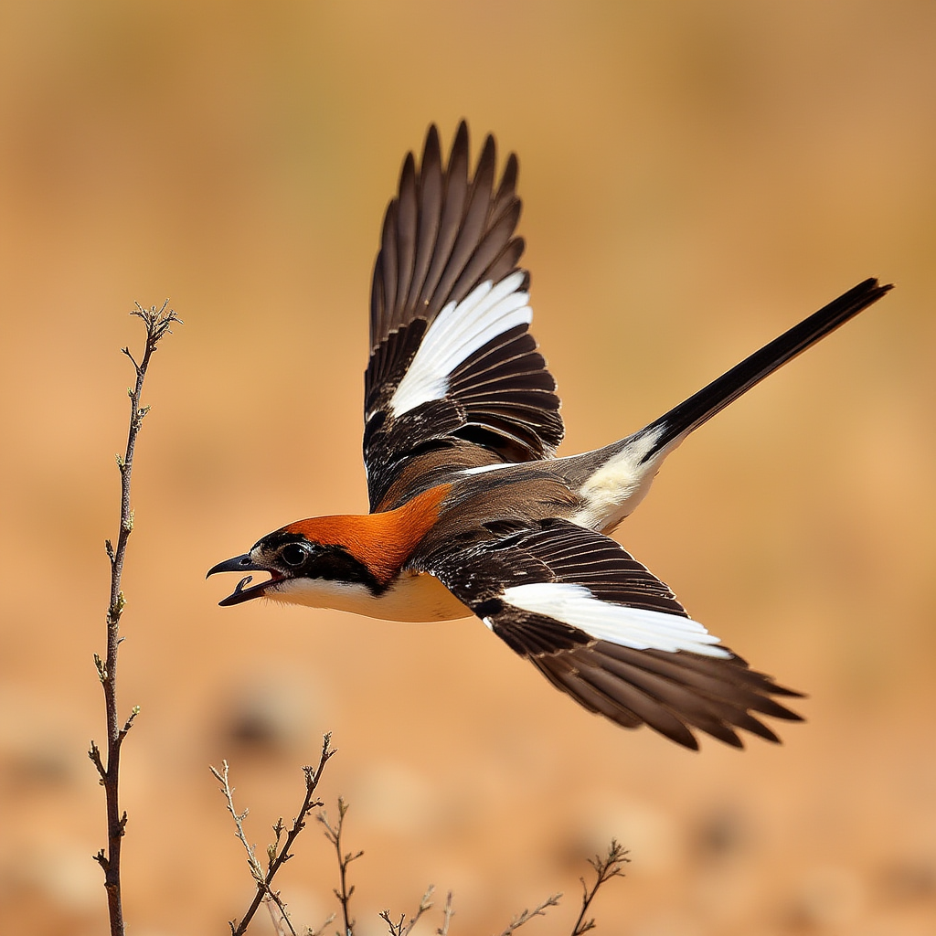 • Hunting: Like other shrikes, it has a predatory nature, earning its family the nickname "butcherbirds" (from the Latin genus name Lanius). It hunts from an exposed perch, such as a tree branch, fence post, or power line, and then swoops down to capture prey on the ground. It also makes sallies to catch flying insects.