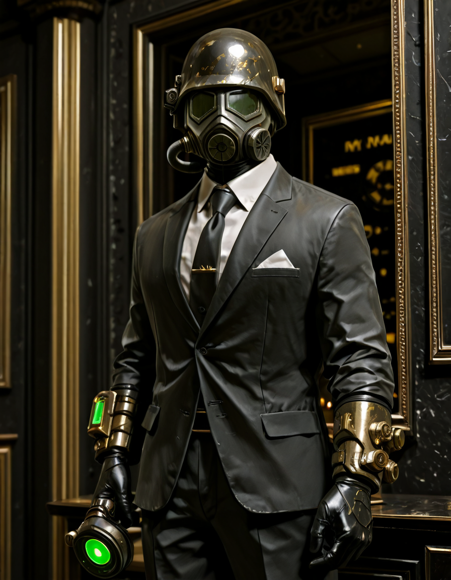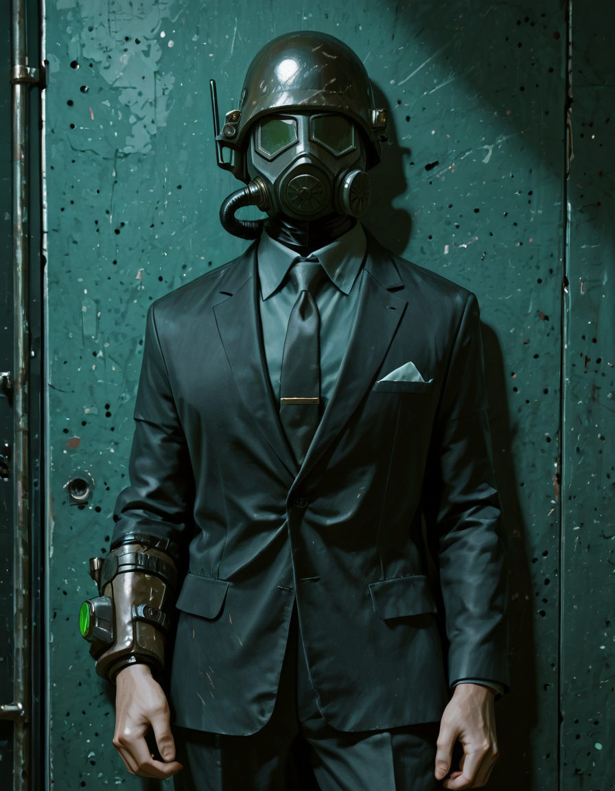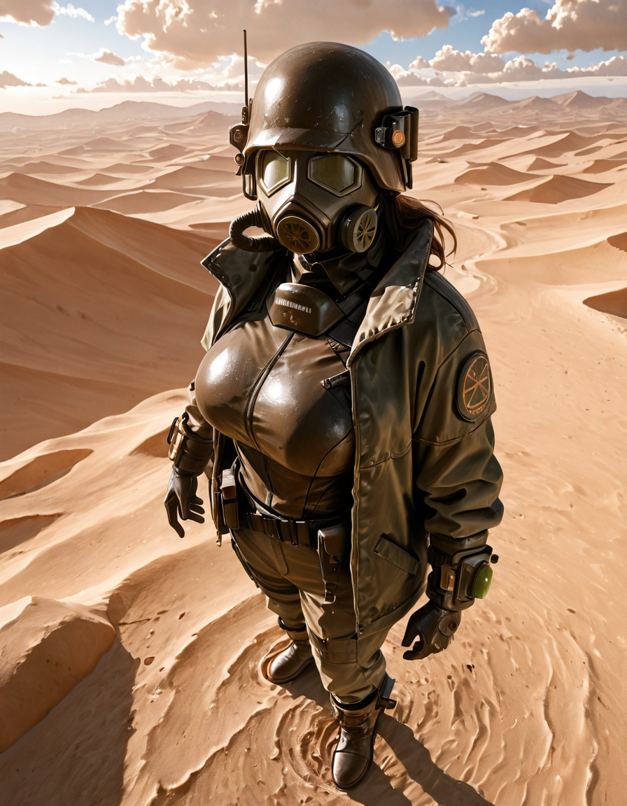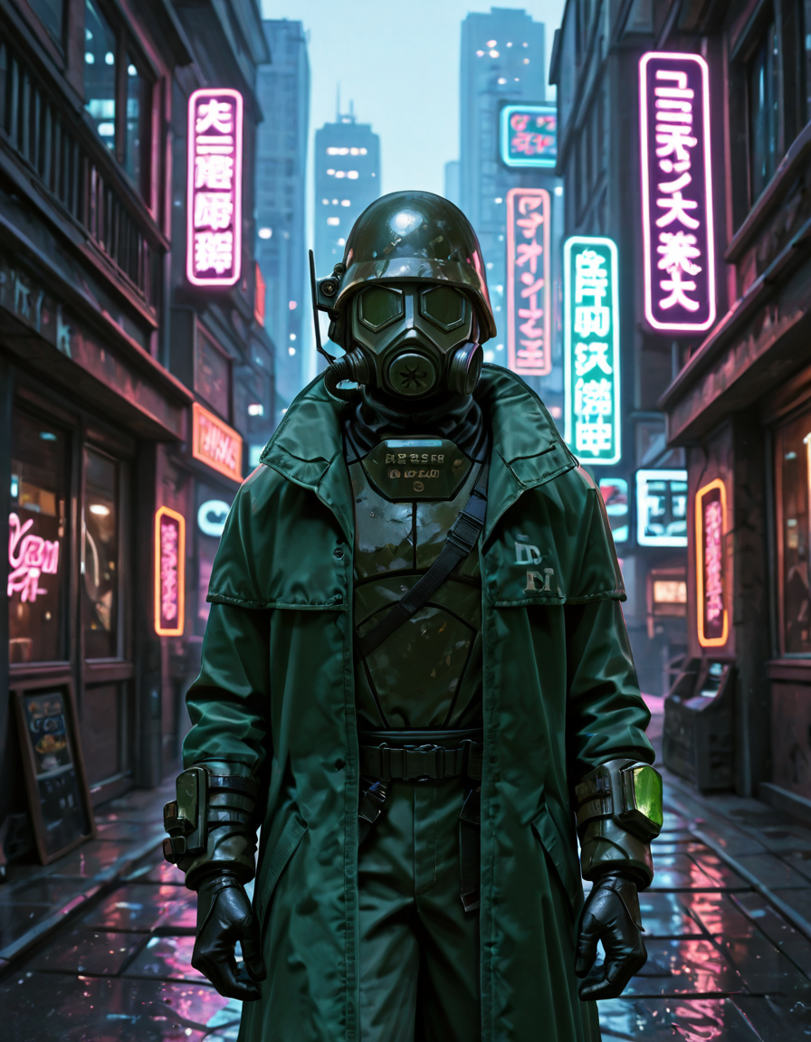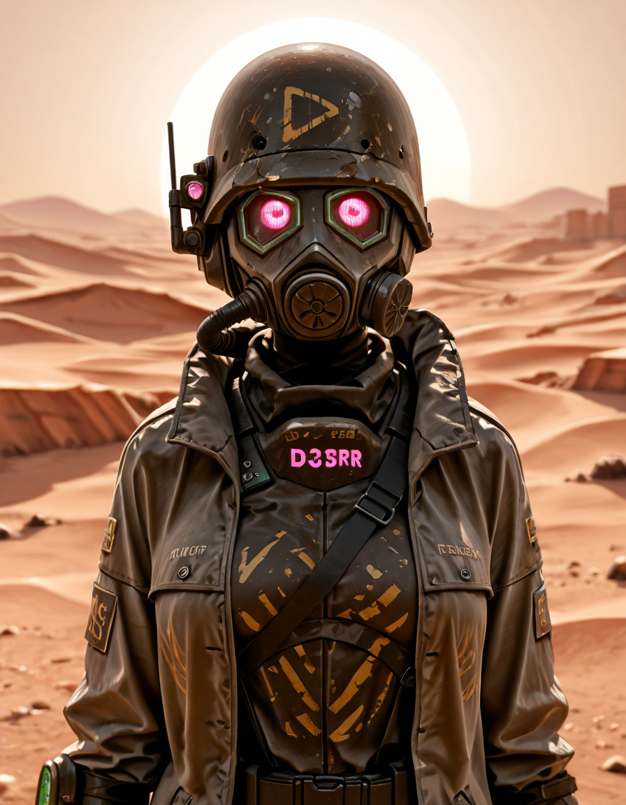 1boy, d3s3rtr4ng3r, helmet, gas mask, brown coat