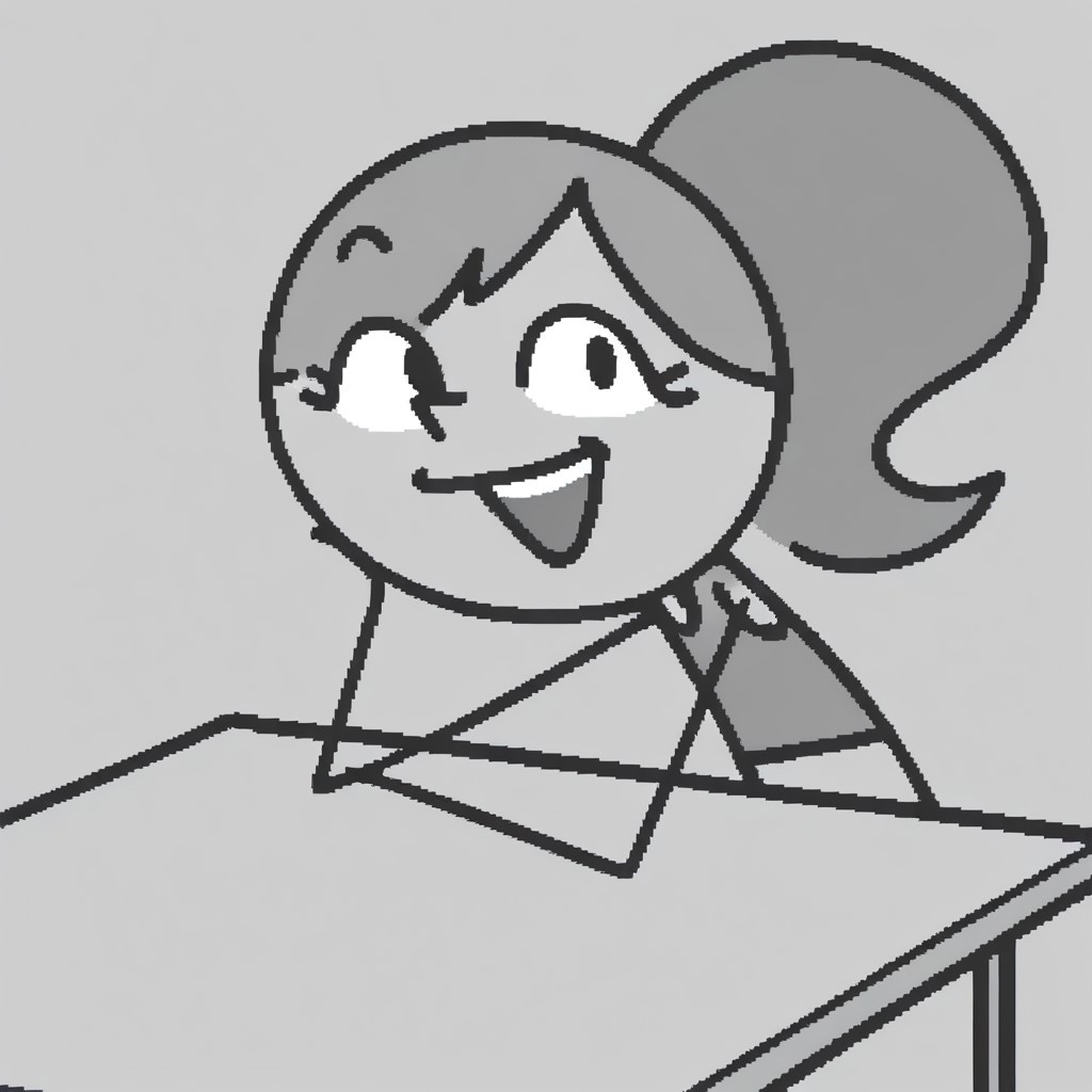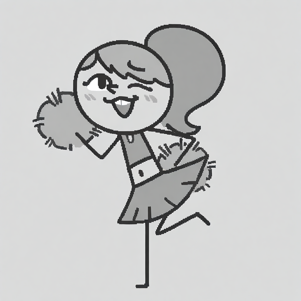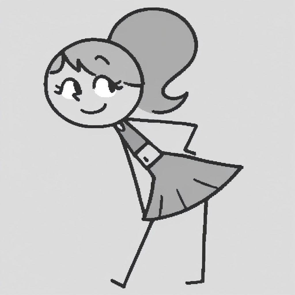 long hair,ponytail,black eyes,stick arms,stick legs,