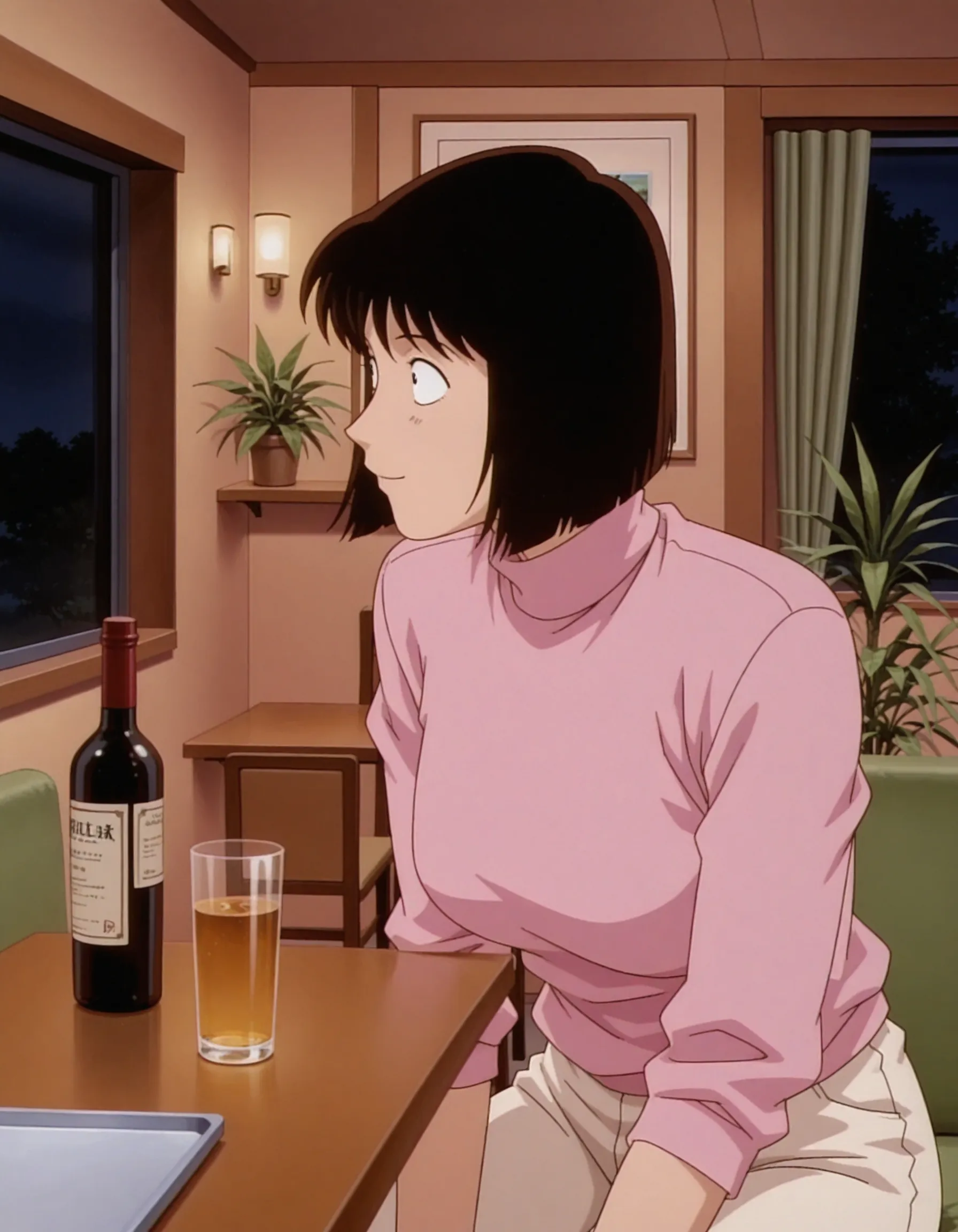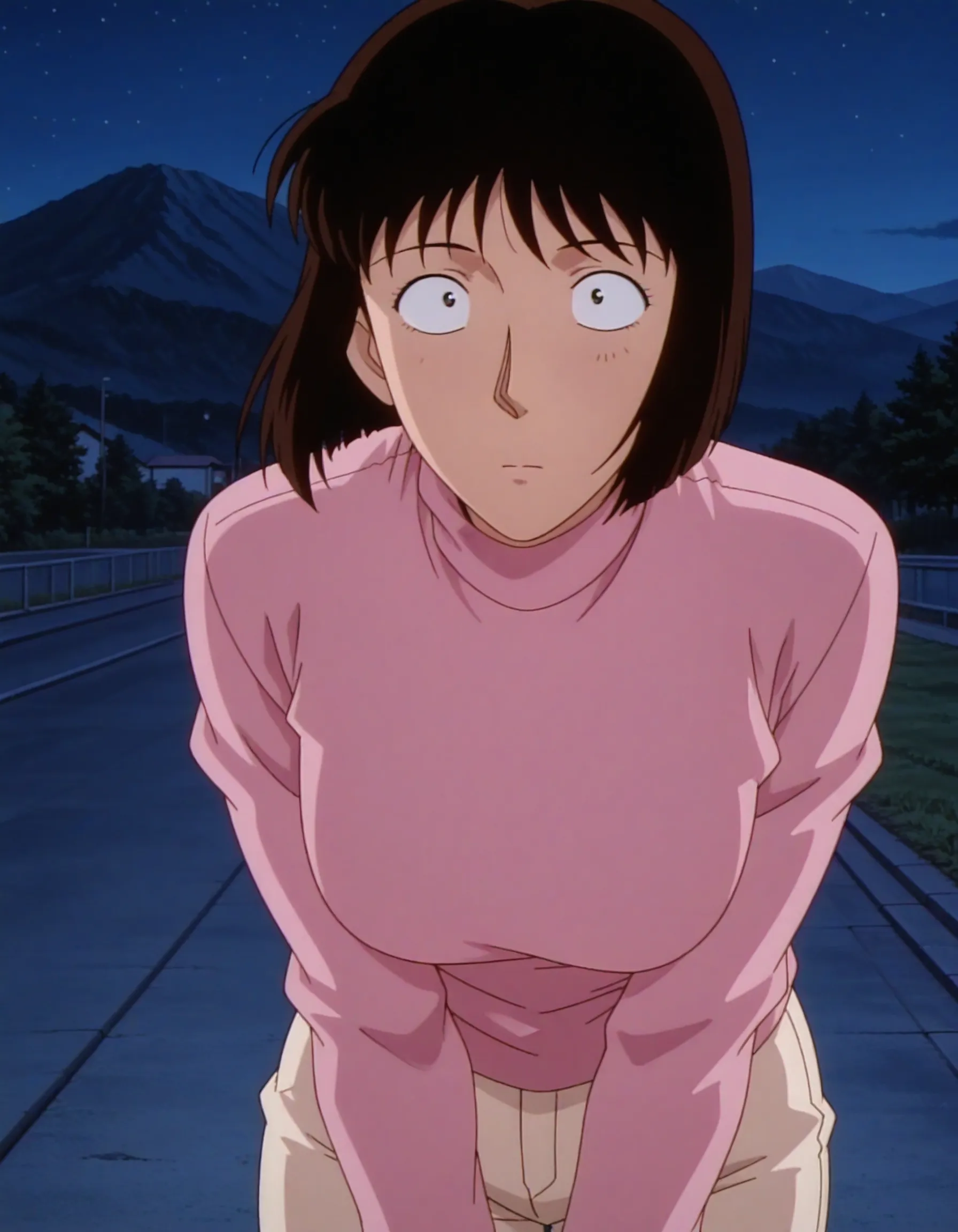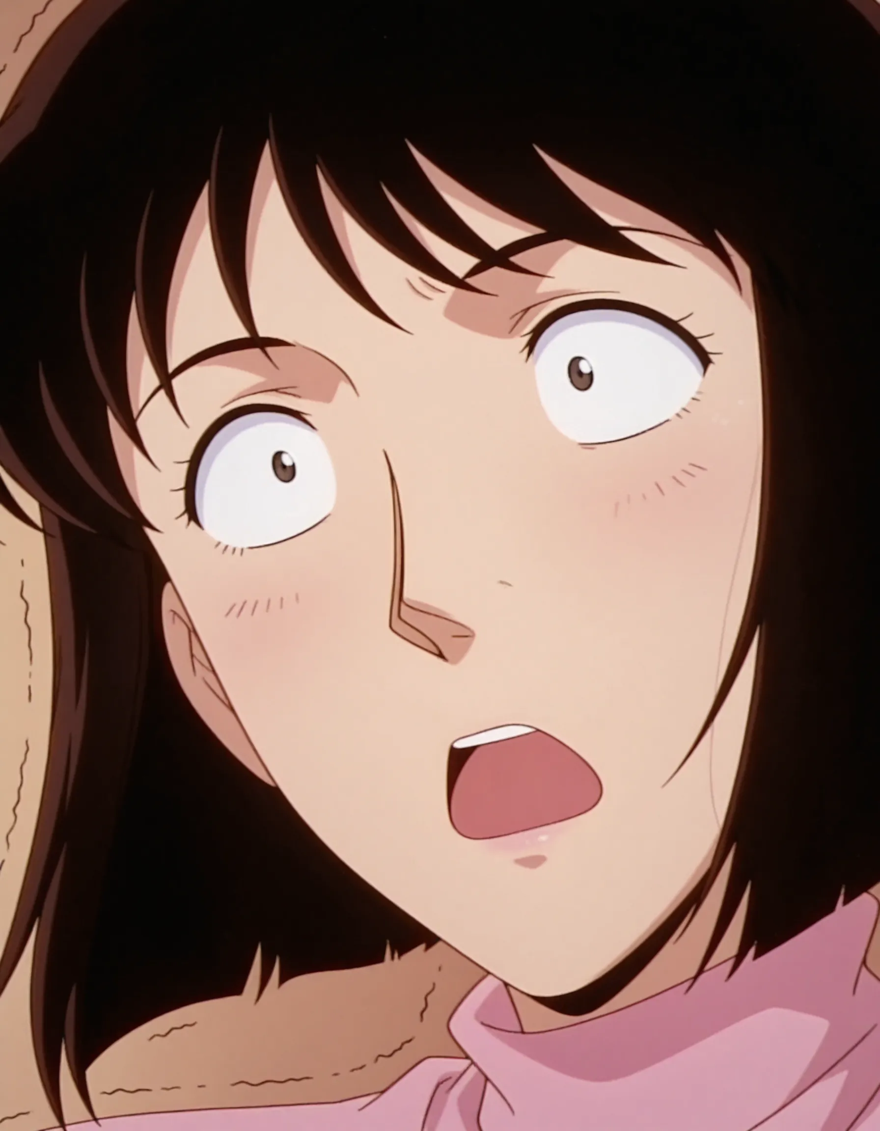 brown hair,black hair,bob cut,bangs,sanpaku,wide-eyed,short hair,mature female,