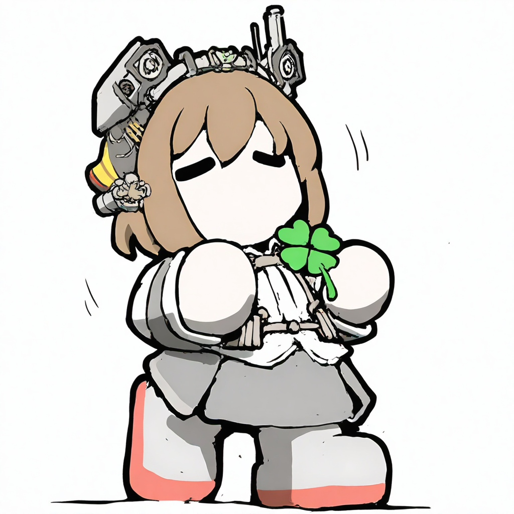 • Character & Scene Descriptors (Enhance your creations, especially with s-task80's favored themes!): anime girl, short brown hair, mechanical headgear, four-leaf clover, holding clover, closed eyes, white shirt, grey skirt, grey shoes, red soles, standing pose, front view, underwater, bubbles, military uniform, tank, weapon, naval uniform, battleship girl (for Kantai Collection vibes)