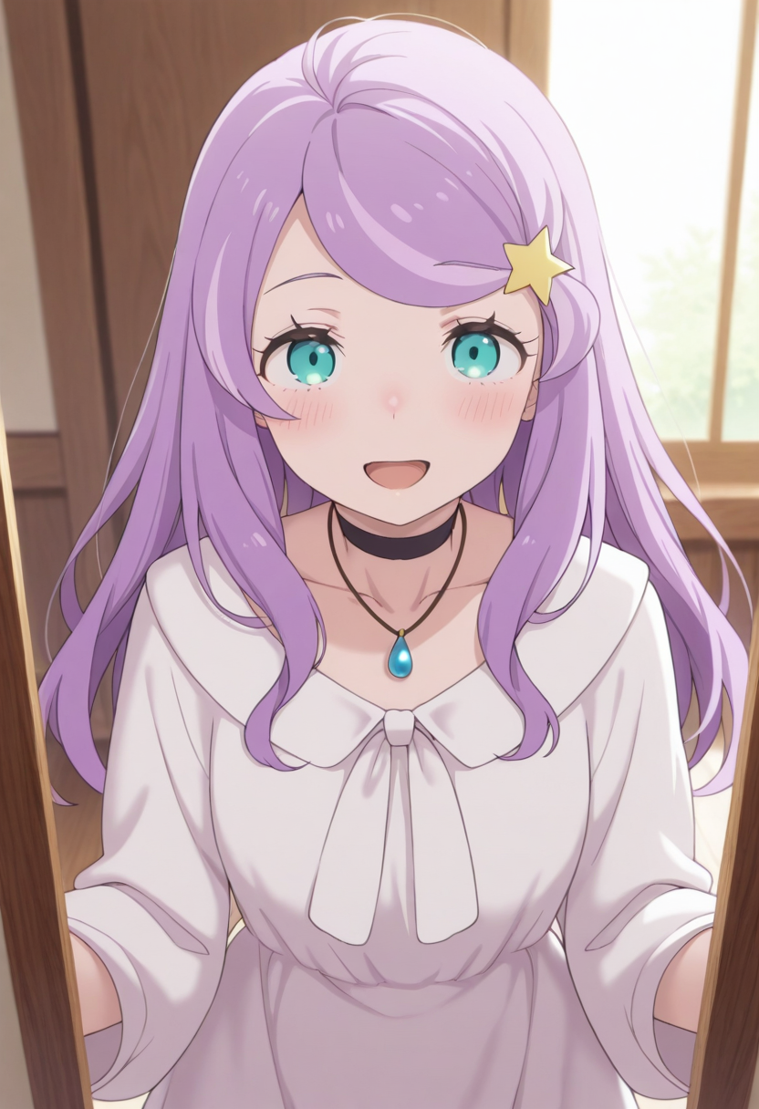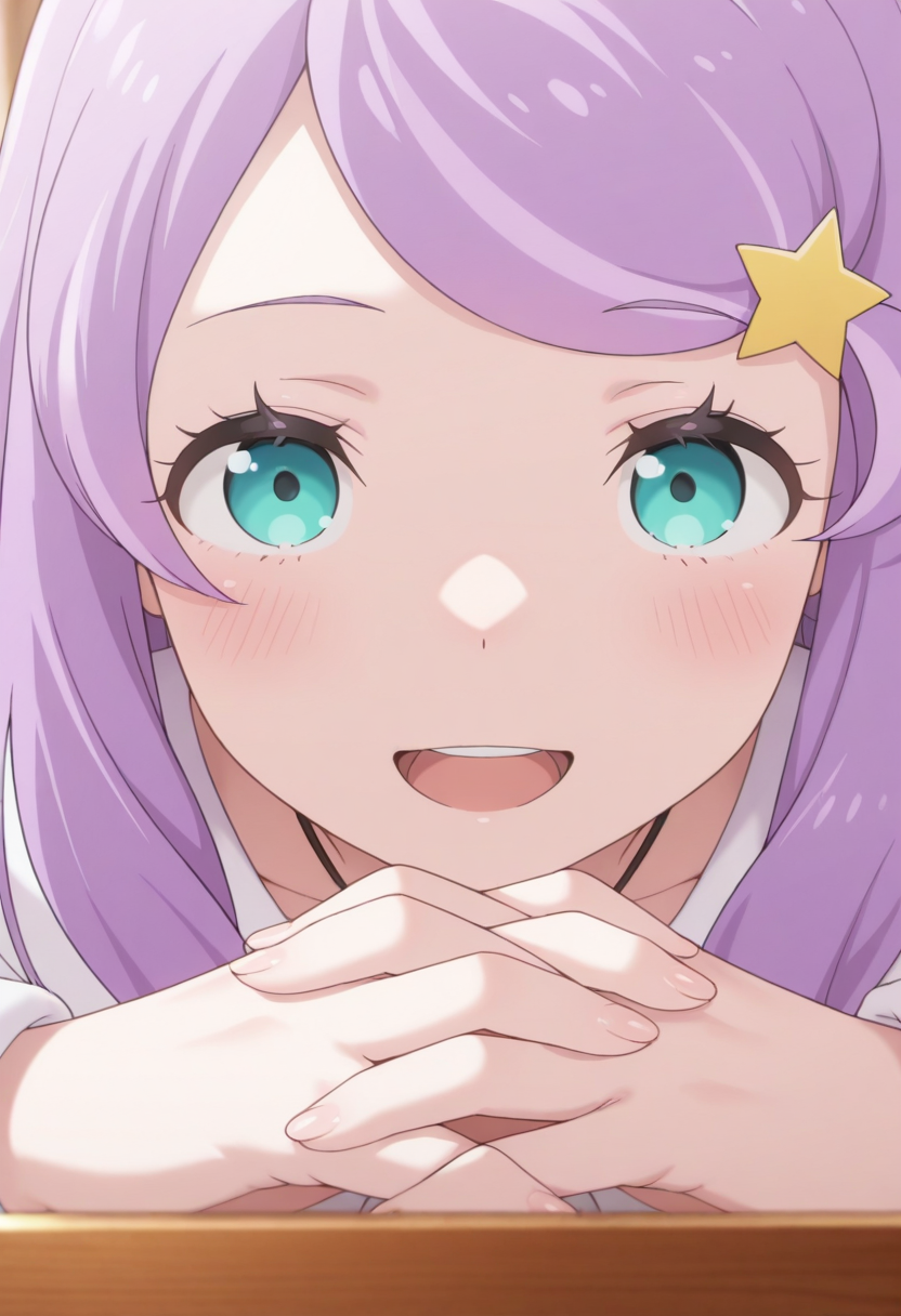 Trigger Words: anastasia hoshin, purple hair, star hair ornament, long hair, aqua eyes