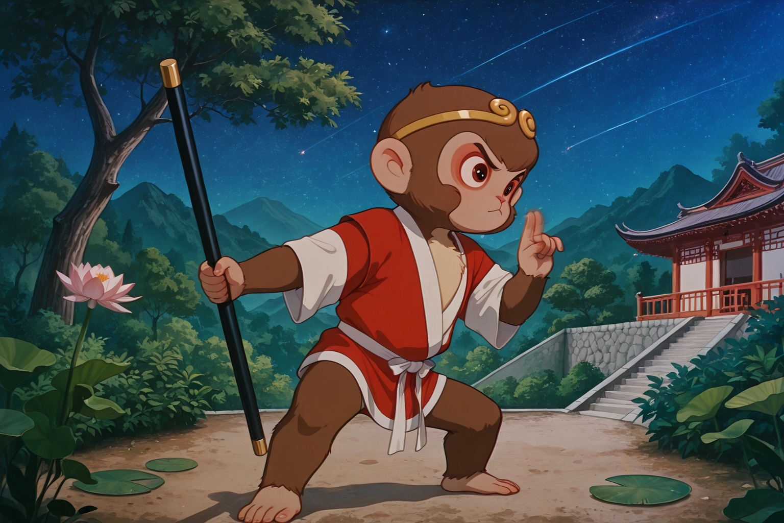 Trained on 317 upscaled images from the 1960 Japanese film Alakazam The Great based on the legendary 16th-century Chinese novel of Journey to the West.