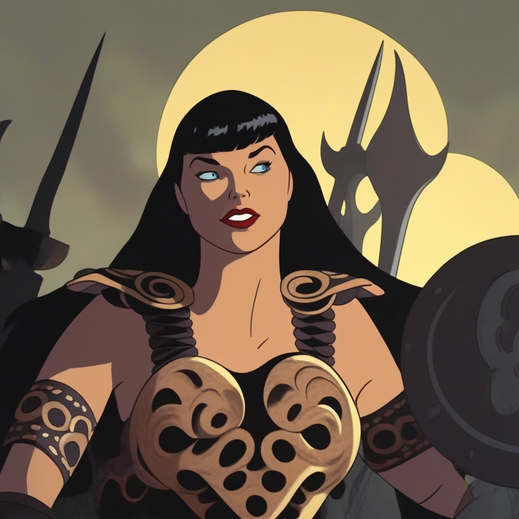 Xena is a fictional character from the Xena: Warrior Princess franchise. Xena: Warrior Princess is an American fantasy television series filmed in New Zealand. Writer-director-producer Robert Tapert created the series in 1995 under his production tag, Renaissance Pictures, with executive producers R. J. Stewart. Trained on 84 comic and television images.
