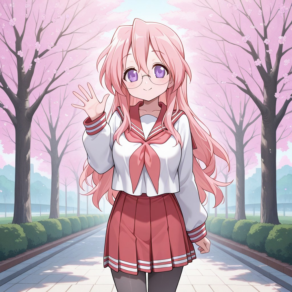 takara_miyuki, glasses, serafuku, pleated skirt, pantyhose, loafers