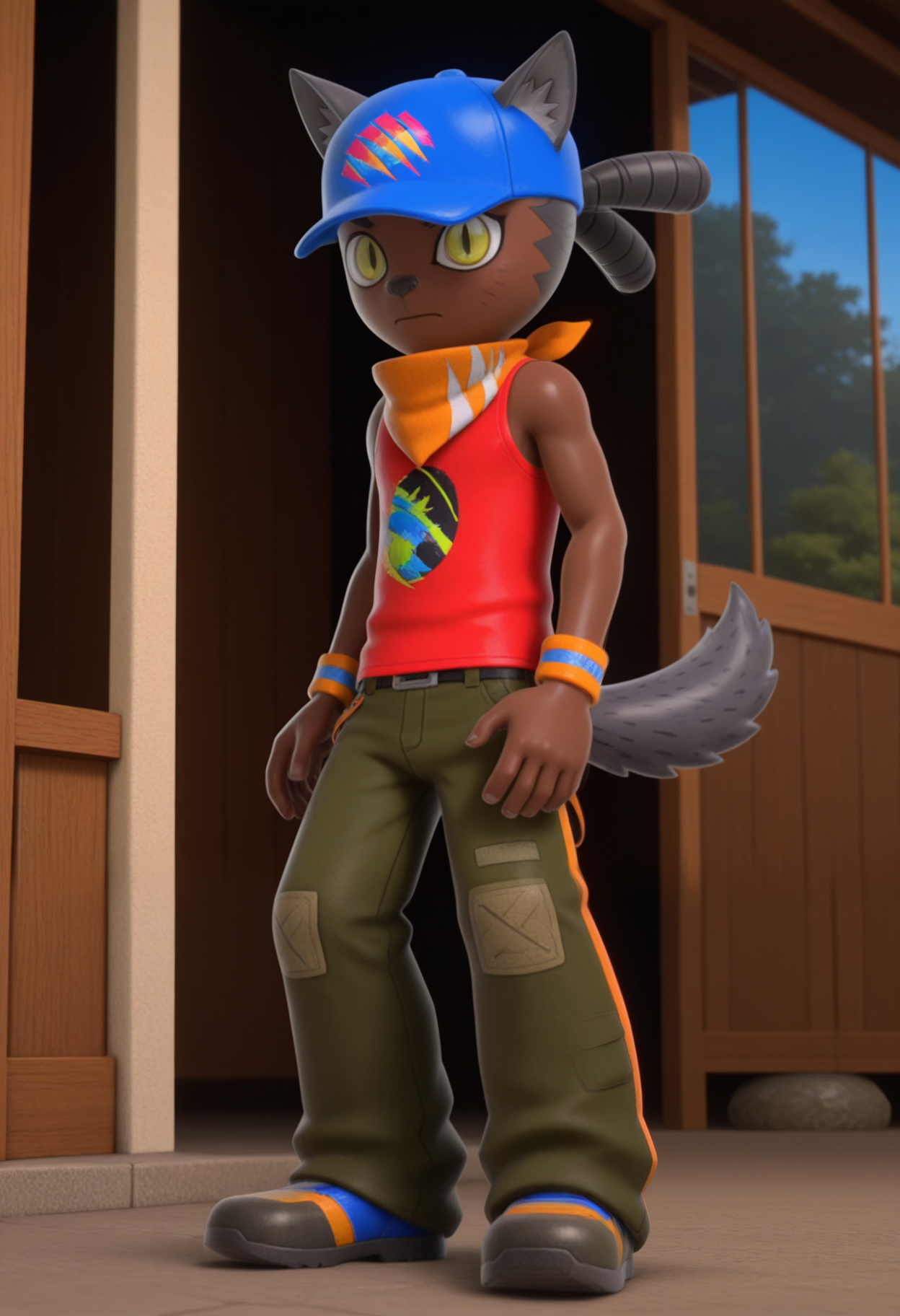 Trigger words: m4x, wolf boy, dark skin, green eyes, slit pupils,