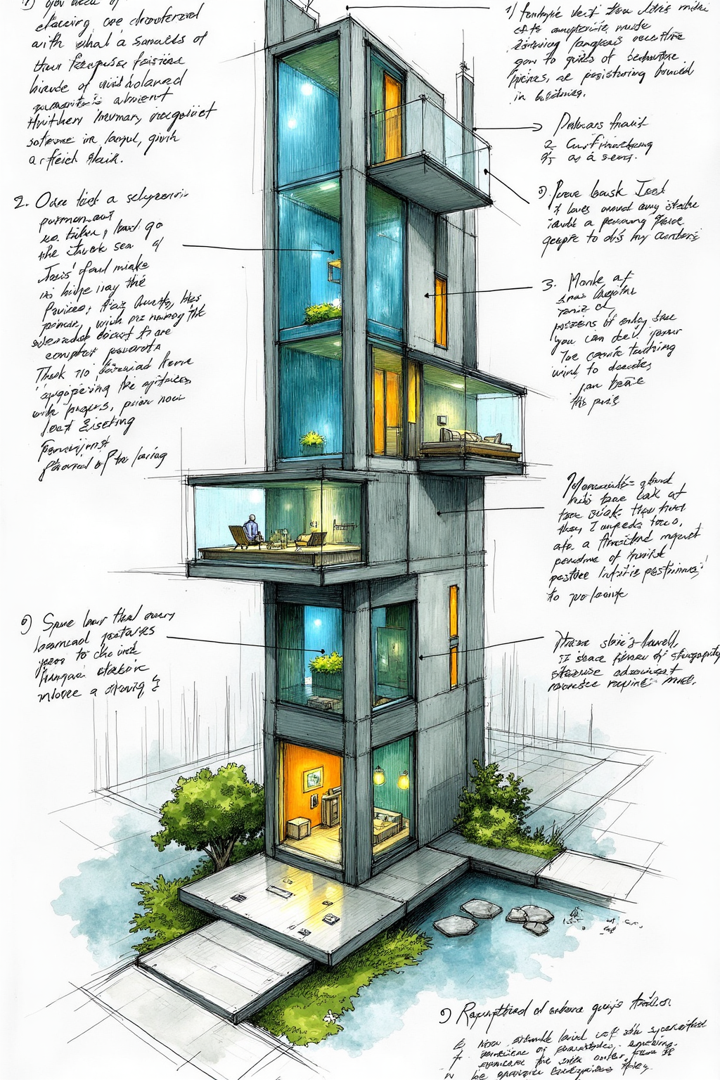 It has excellent creative expansibility and is suitable for scenarios such as architectural design concept expression and design inspiration recording.