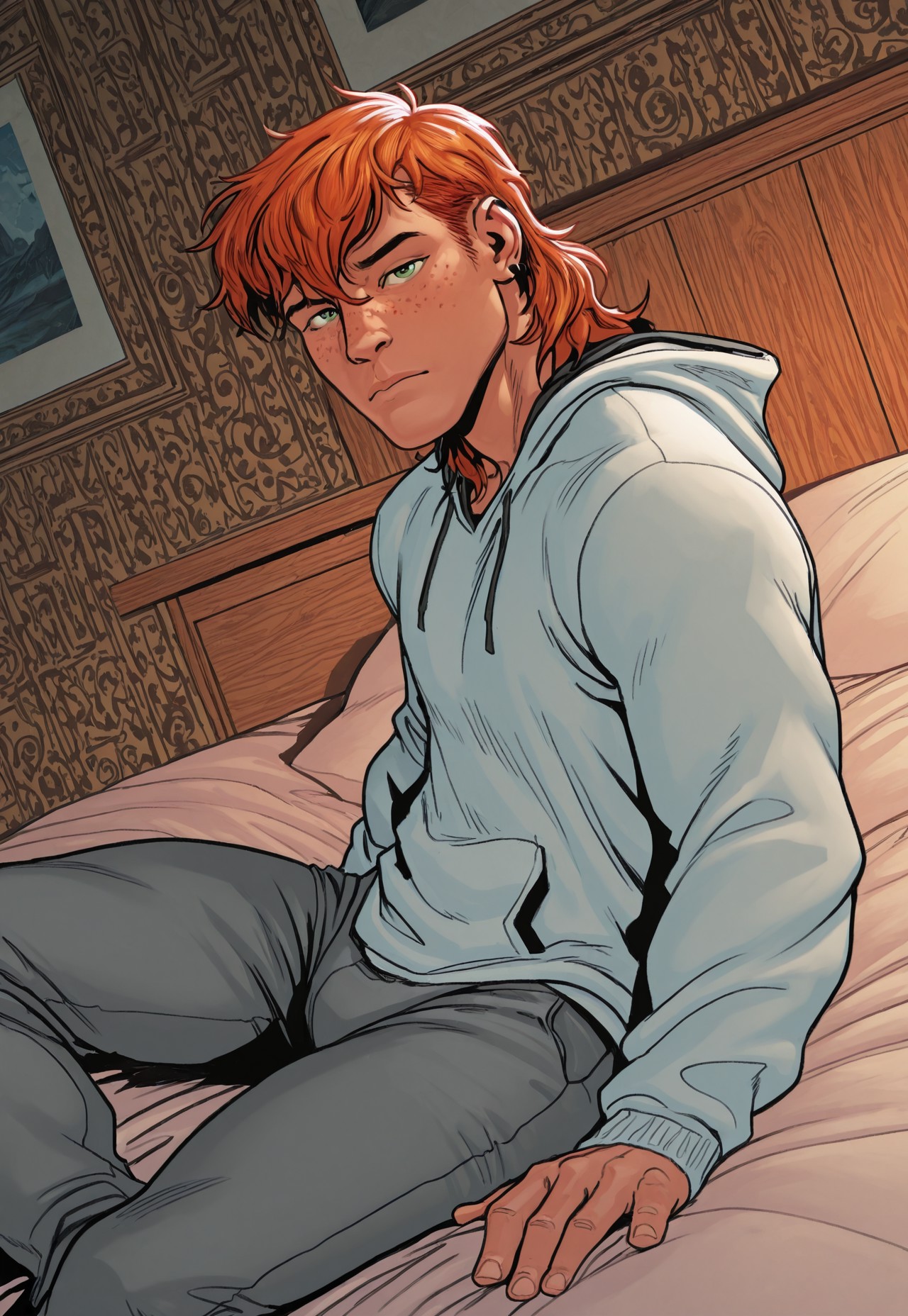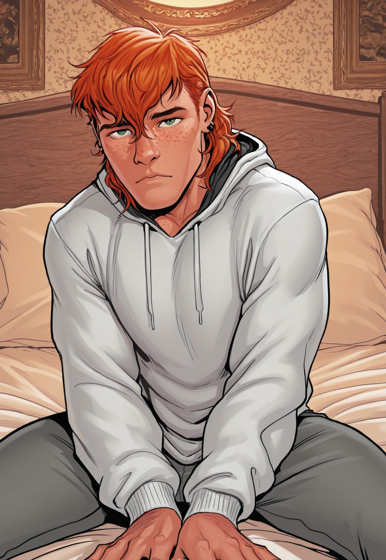 W4LLY, Orange hair, mullet, green eyes, male, freckles