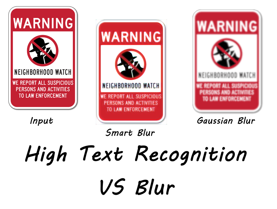 The model has high text retention and some minor detail retention while still applying gaussian blur.