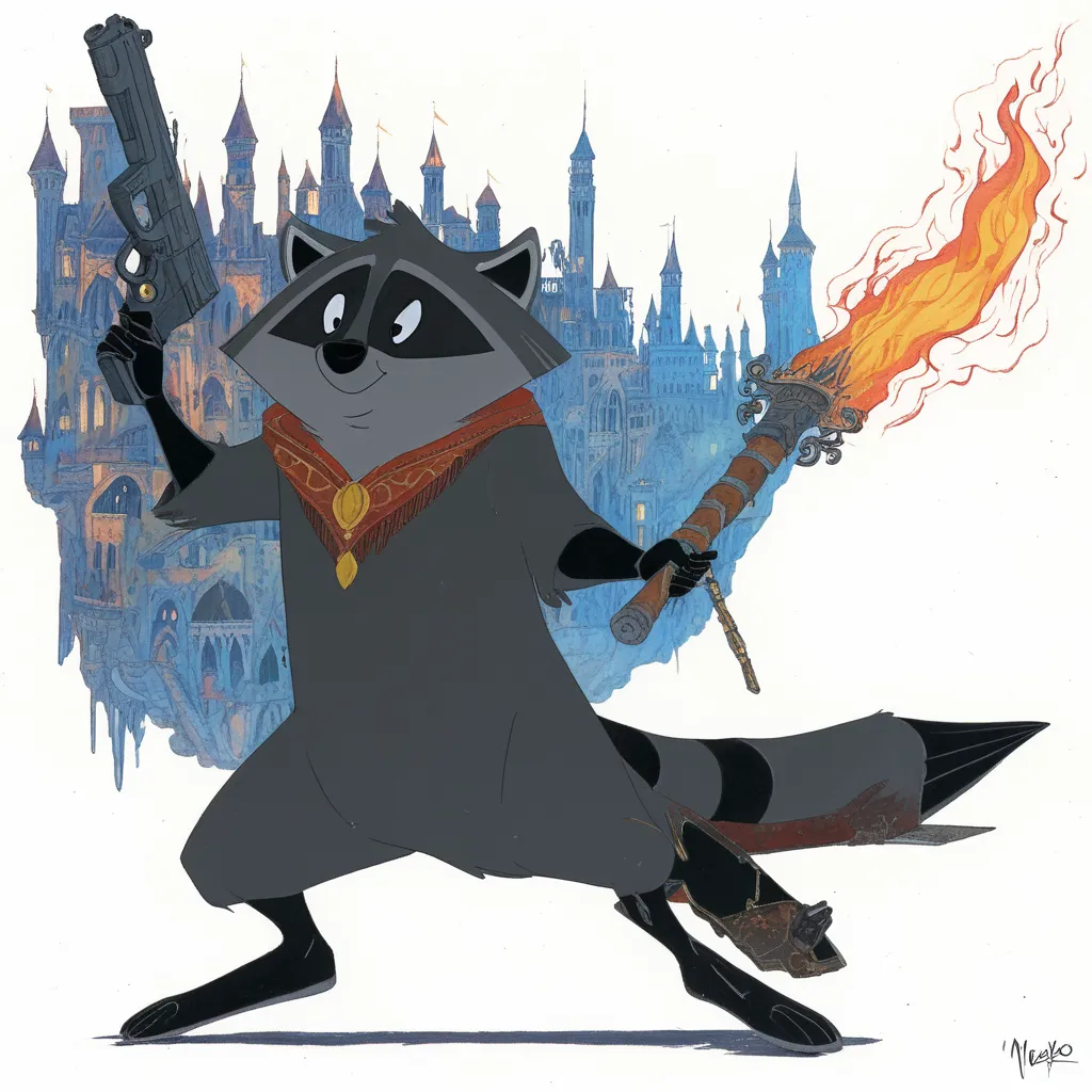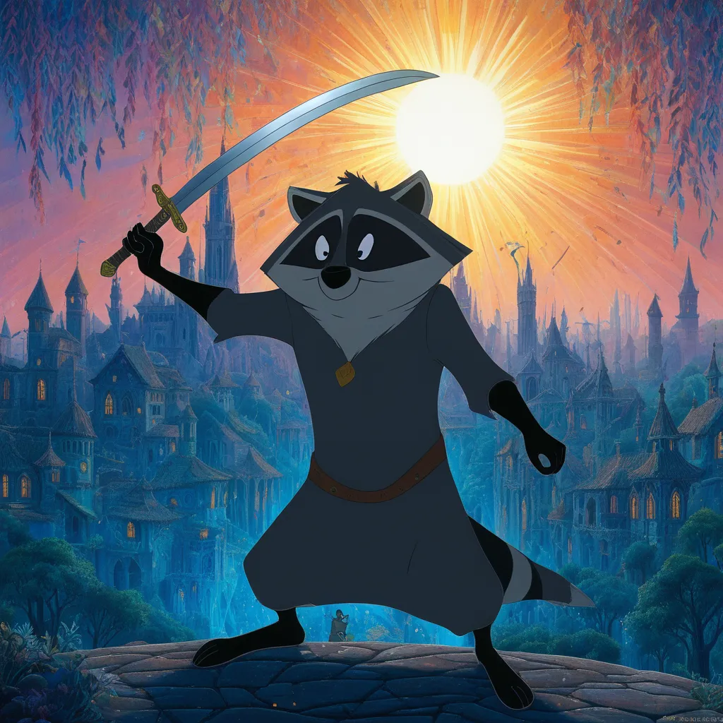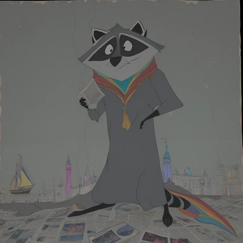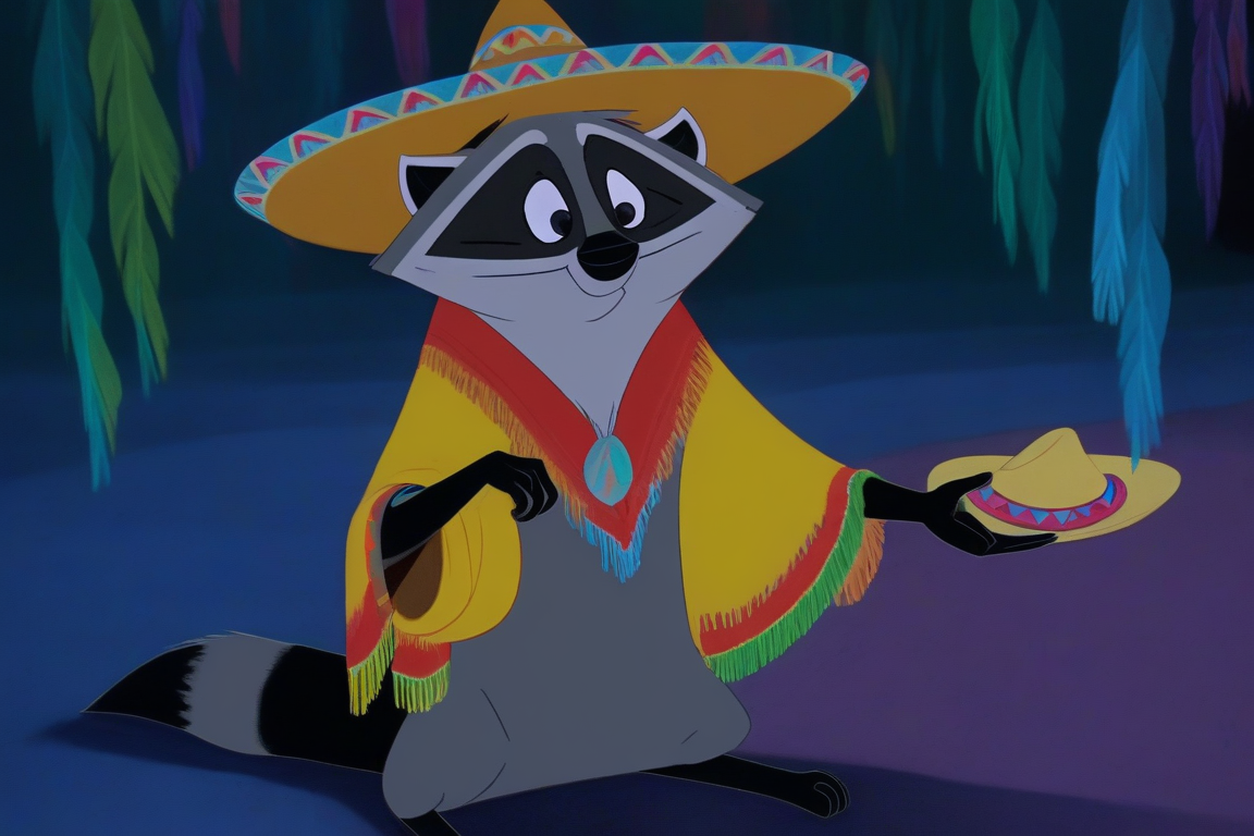 Meeko is a major character in Disney's 1995 animated feature film, Pocahontas. Trained on 55 animated images of Meeko and some pre-production sketches.