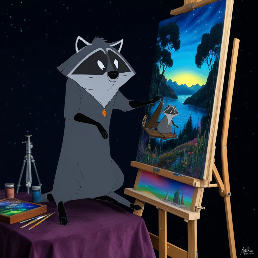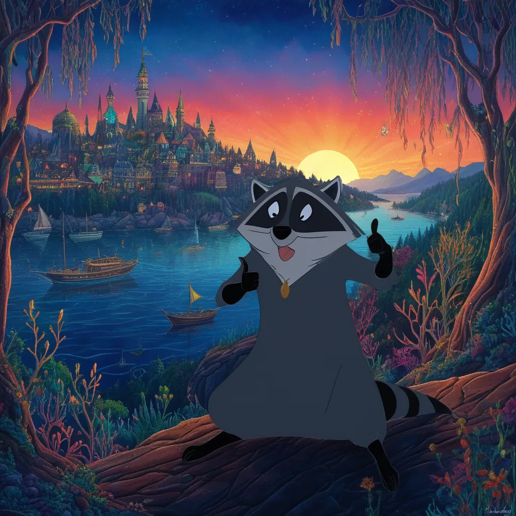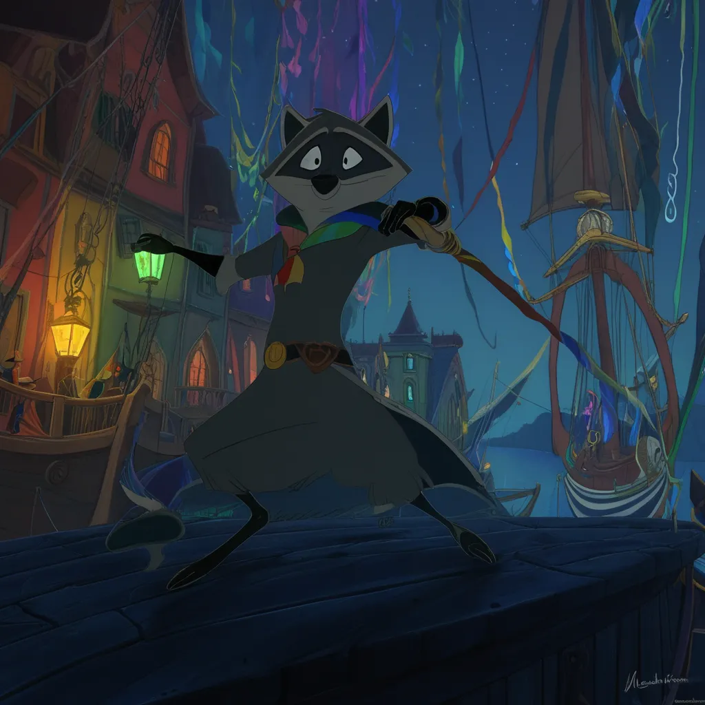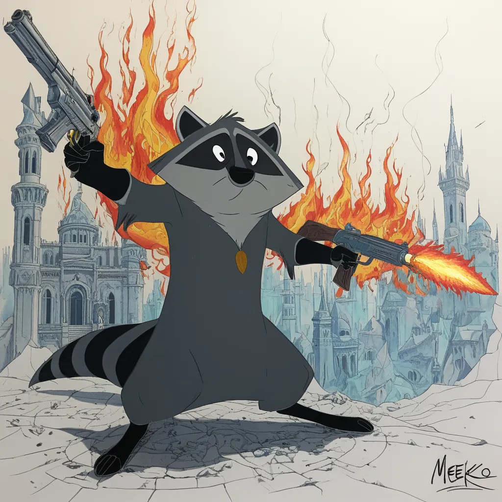 Meeko is a major character in Disney's 1995 animated feature film, Pocahontas. Trained on 55 animated images of Meeko and some pre-production sketches.