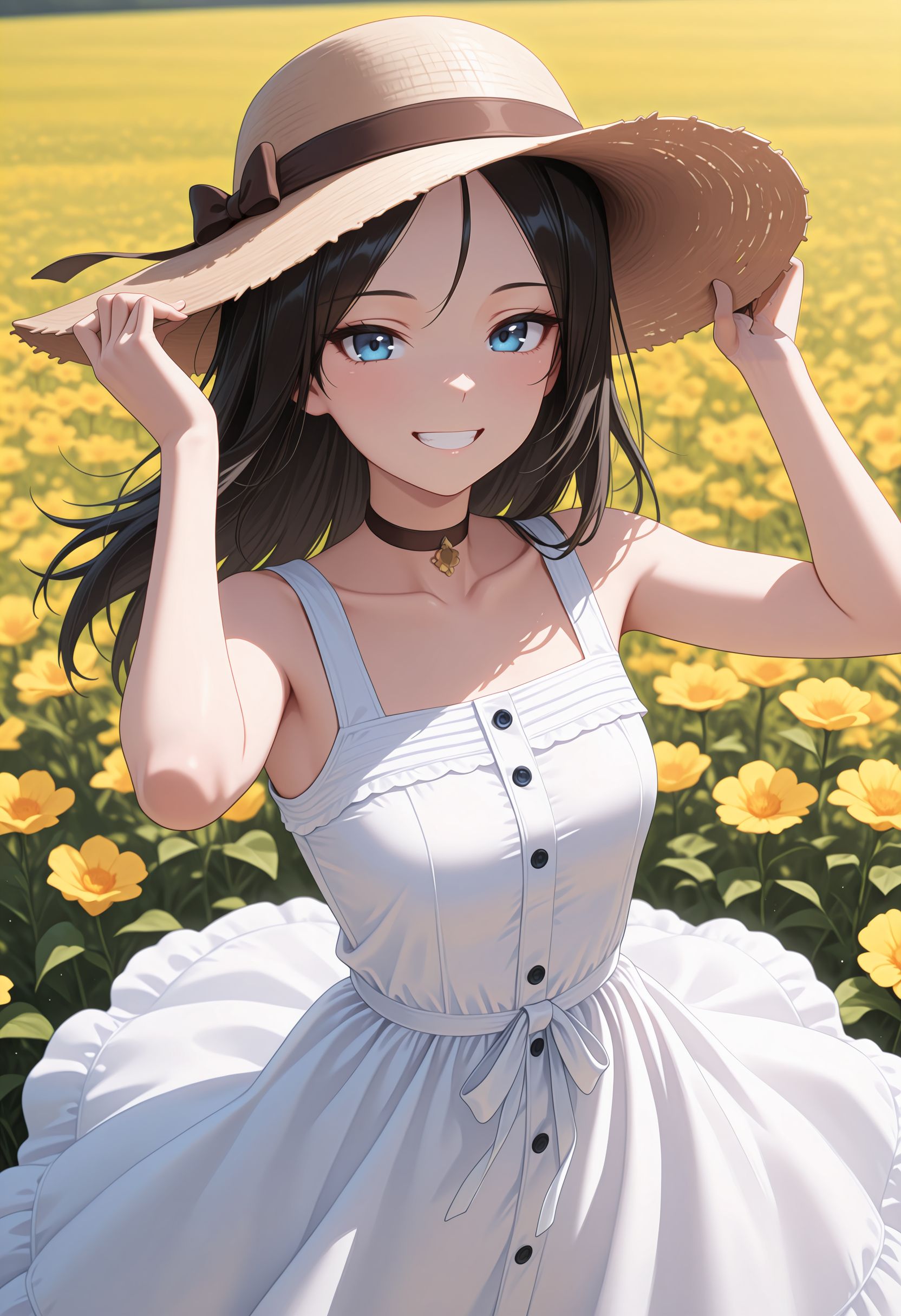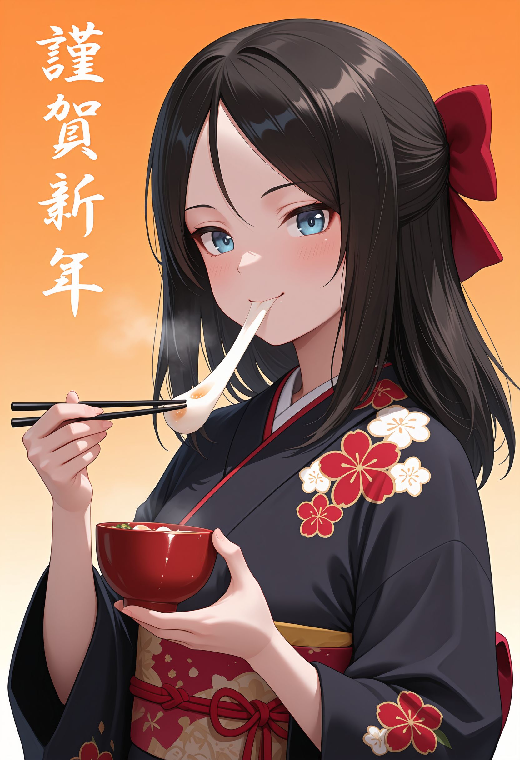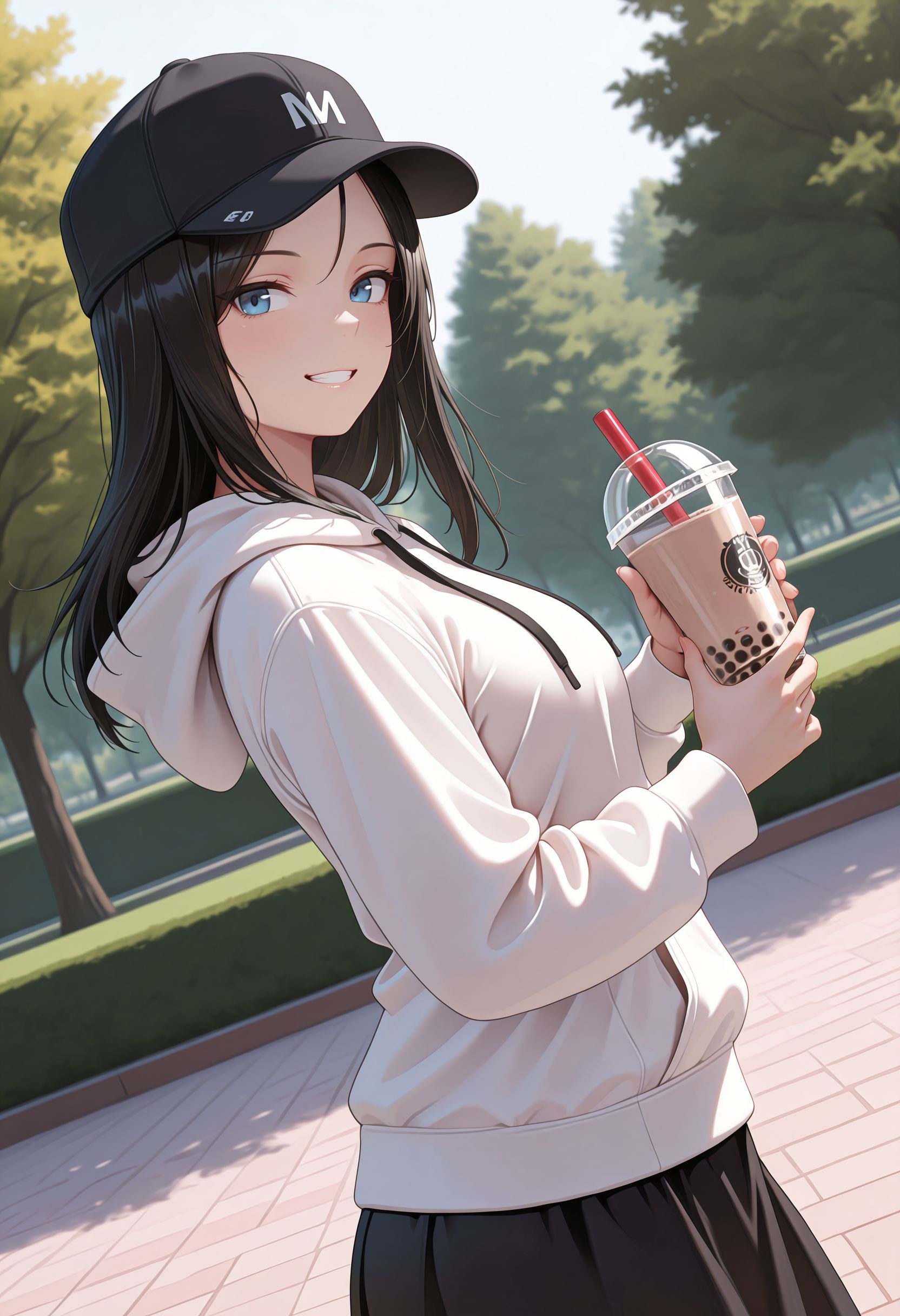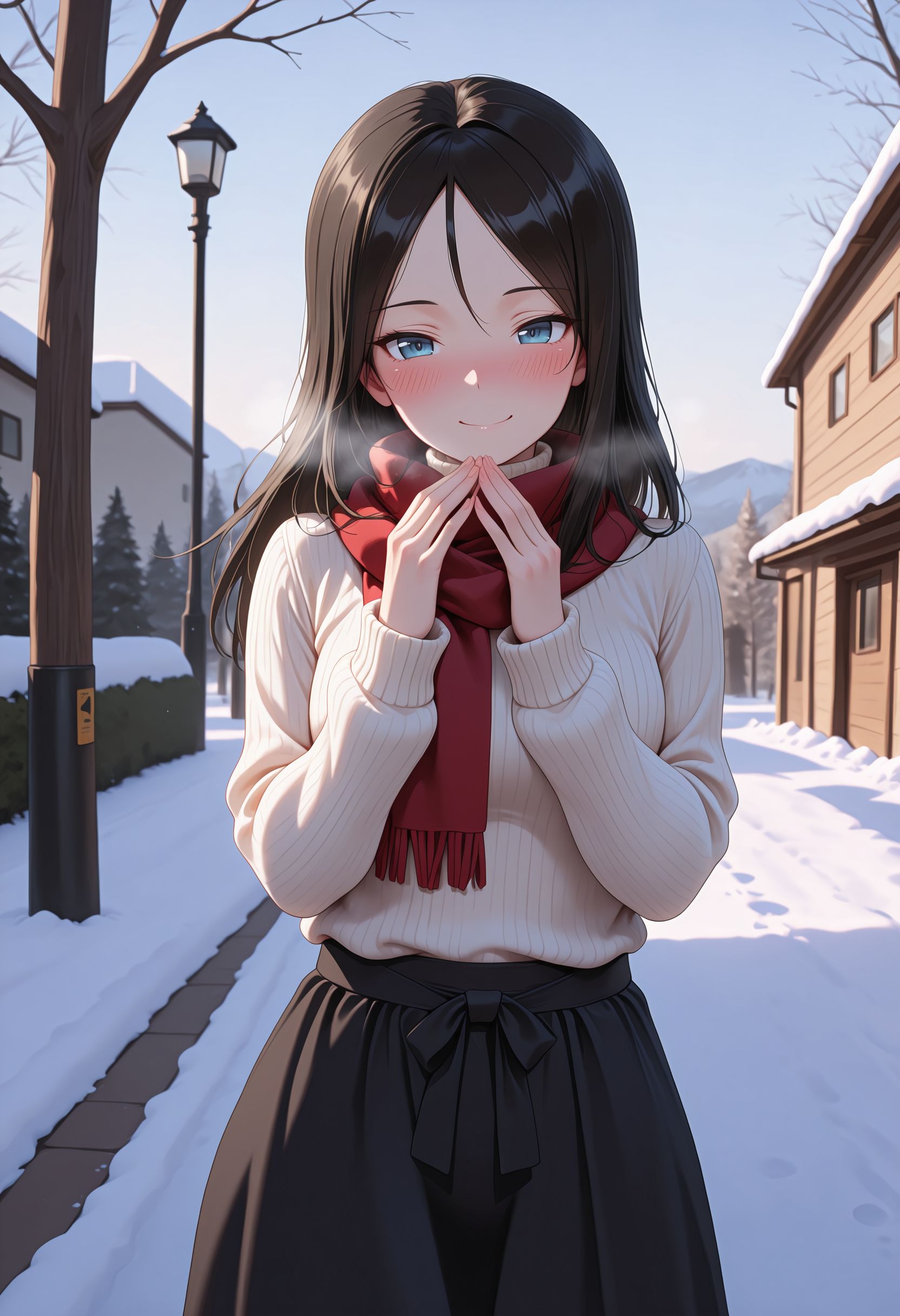 Trigger: 1girl, long hair, blue eyes, swept bangs, black hair,