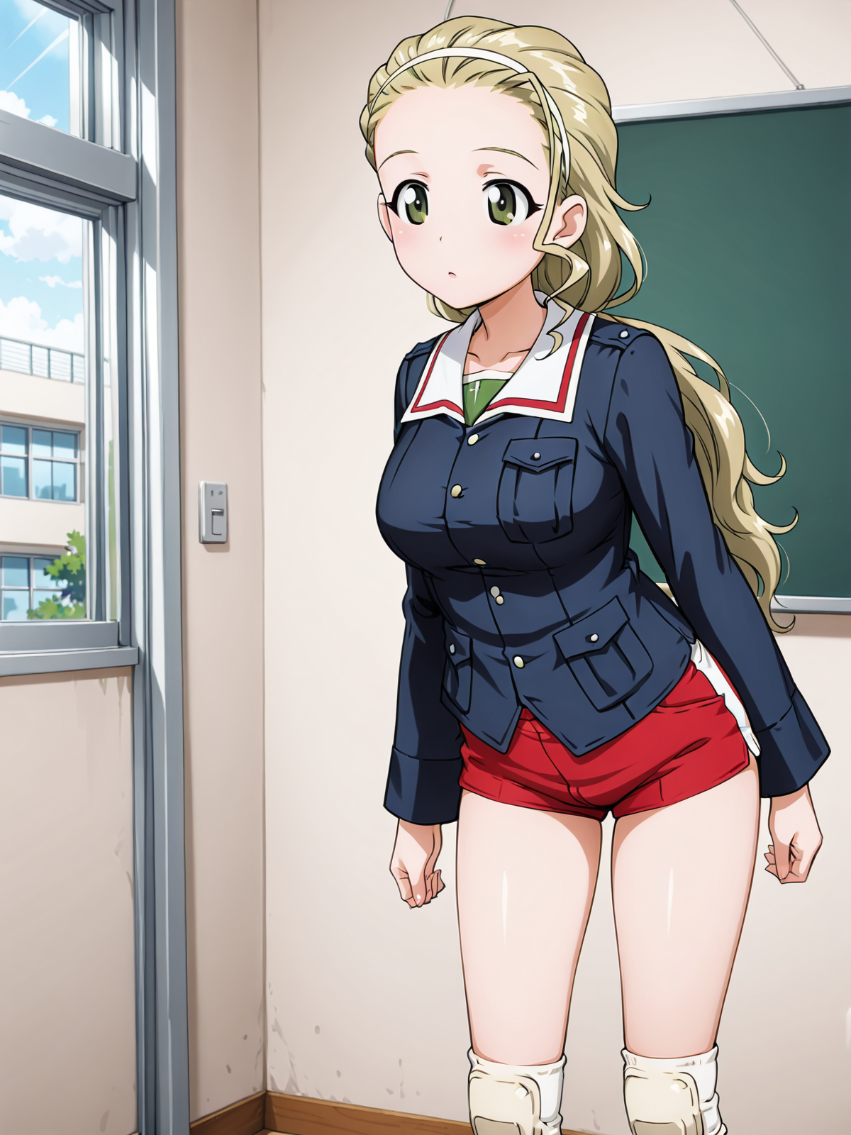 ★ooarai military uniform,no skirt,red shorts,short shorts,red socks,white knee pads,ankle boots,