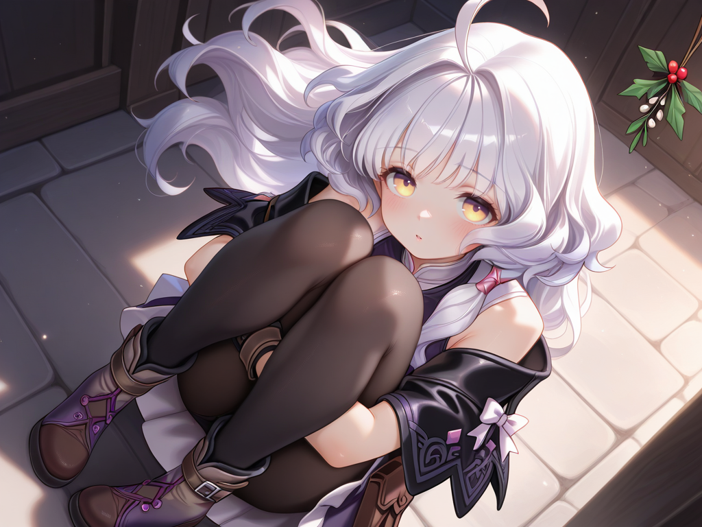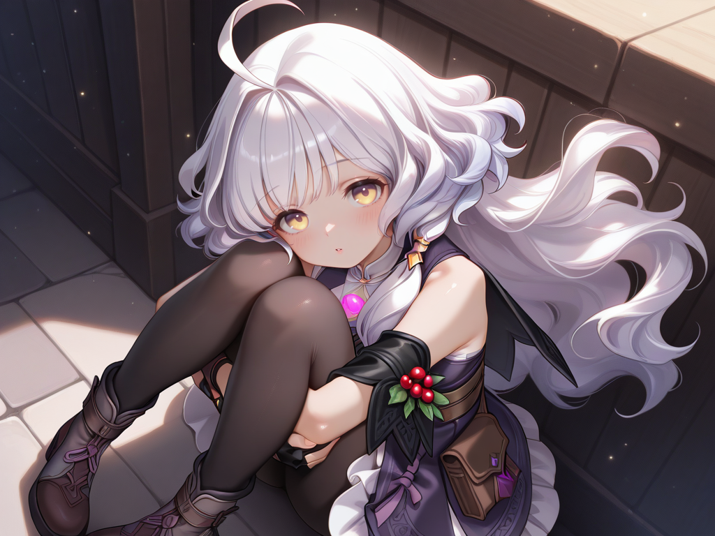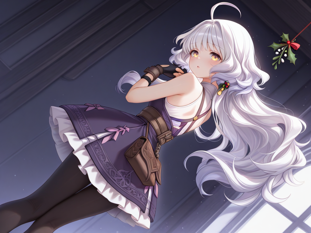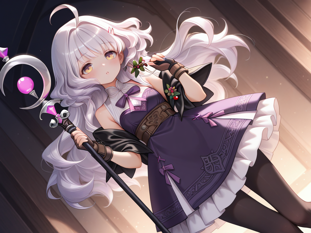 ahoge,white hair,long hair,yellow eyes,blunt bangs,wavy hair