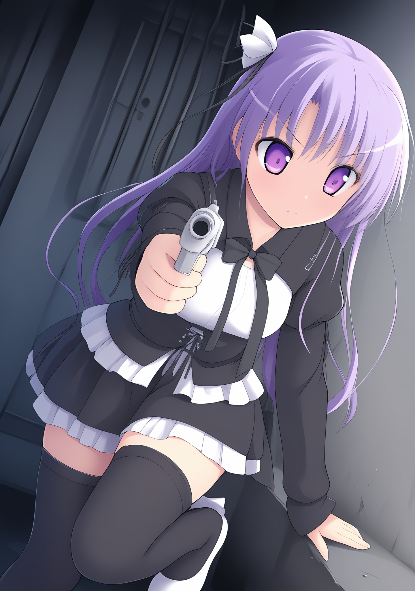 ribbon,zettai ryouiki,hair ribbon,skirt,goth fashion,black thighhighs,lolita fashion,frills,gothic lolita,white pumps,