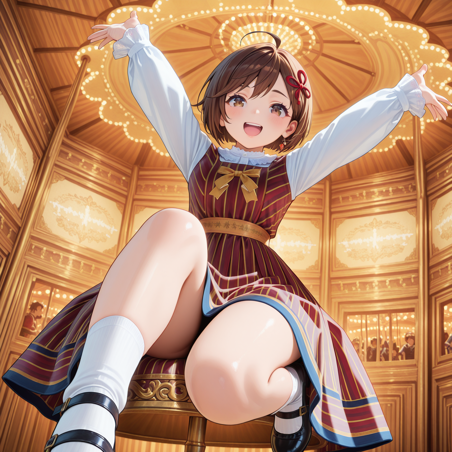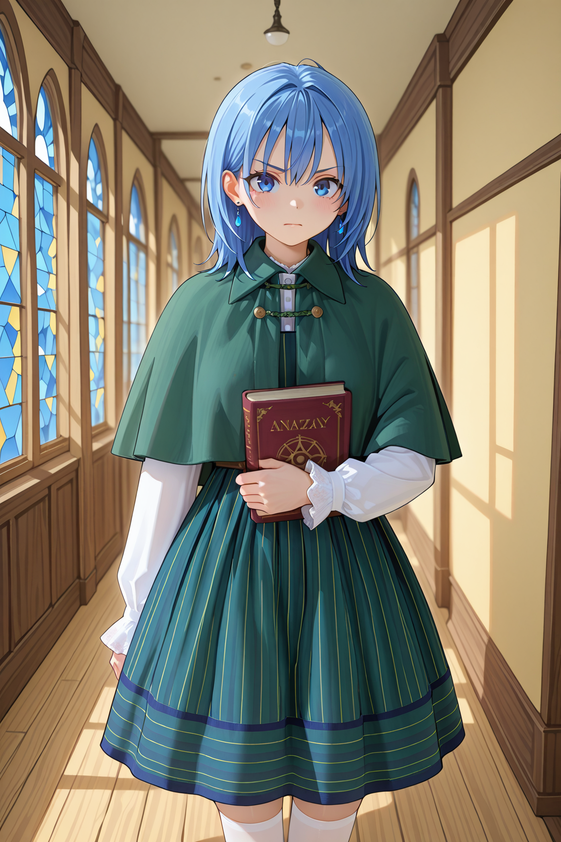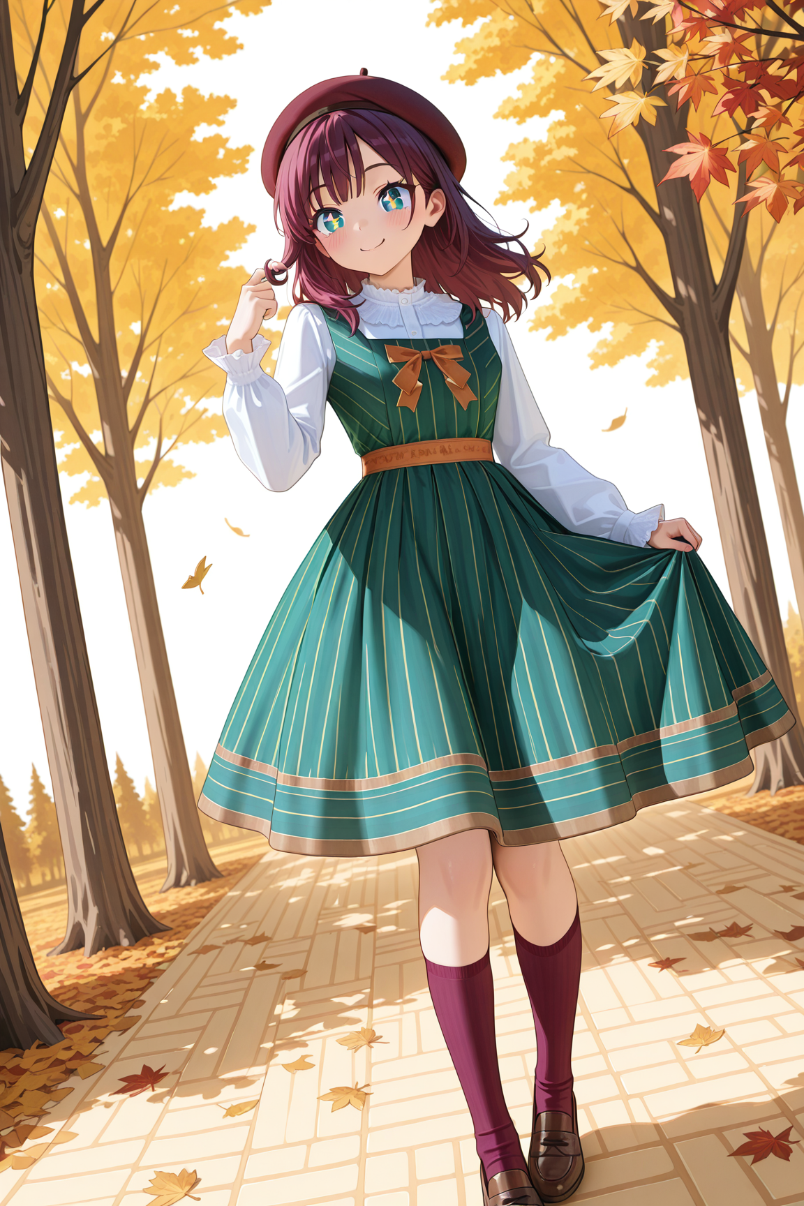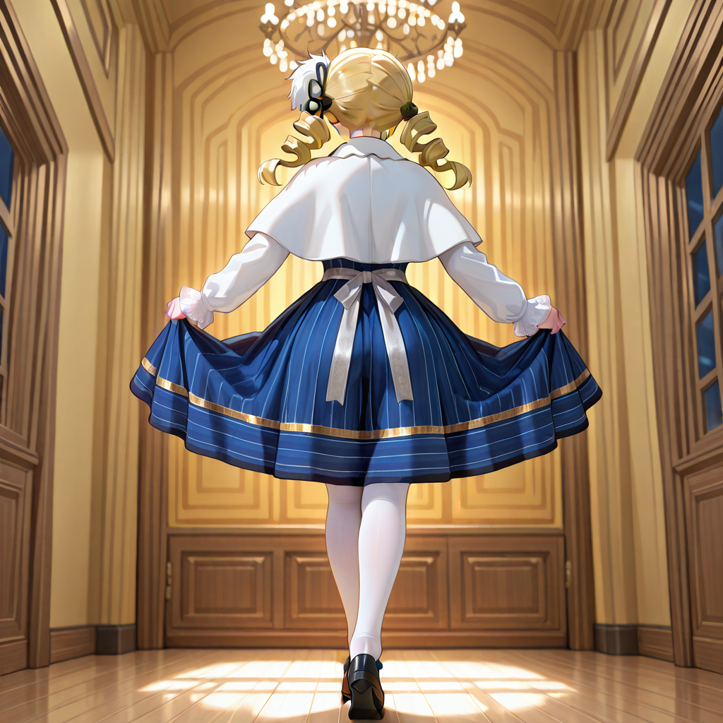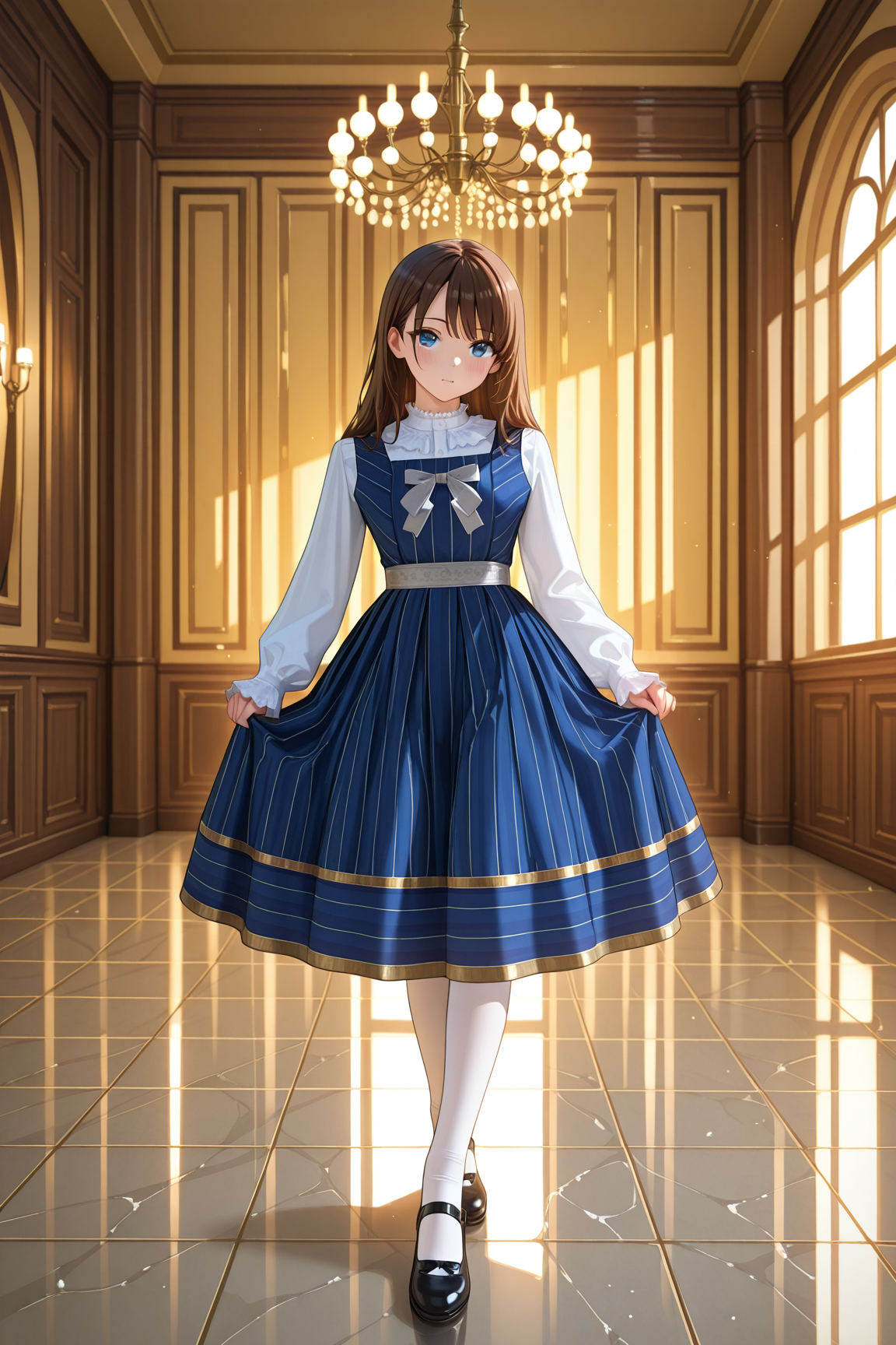 このLoRAは、ストライプ柄クラシカル・ケープレットコーデを再現します。
