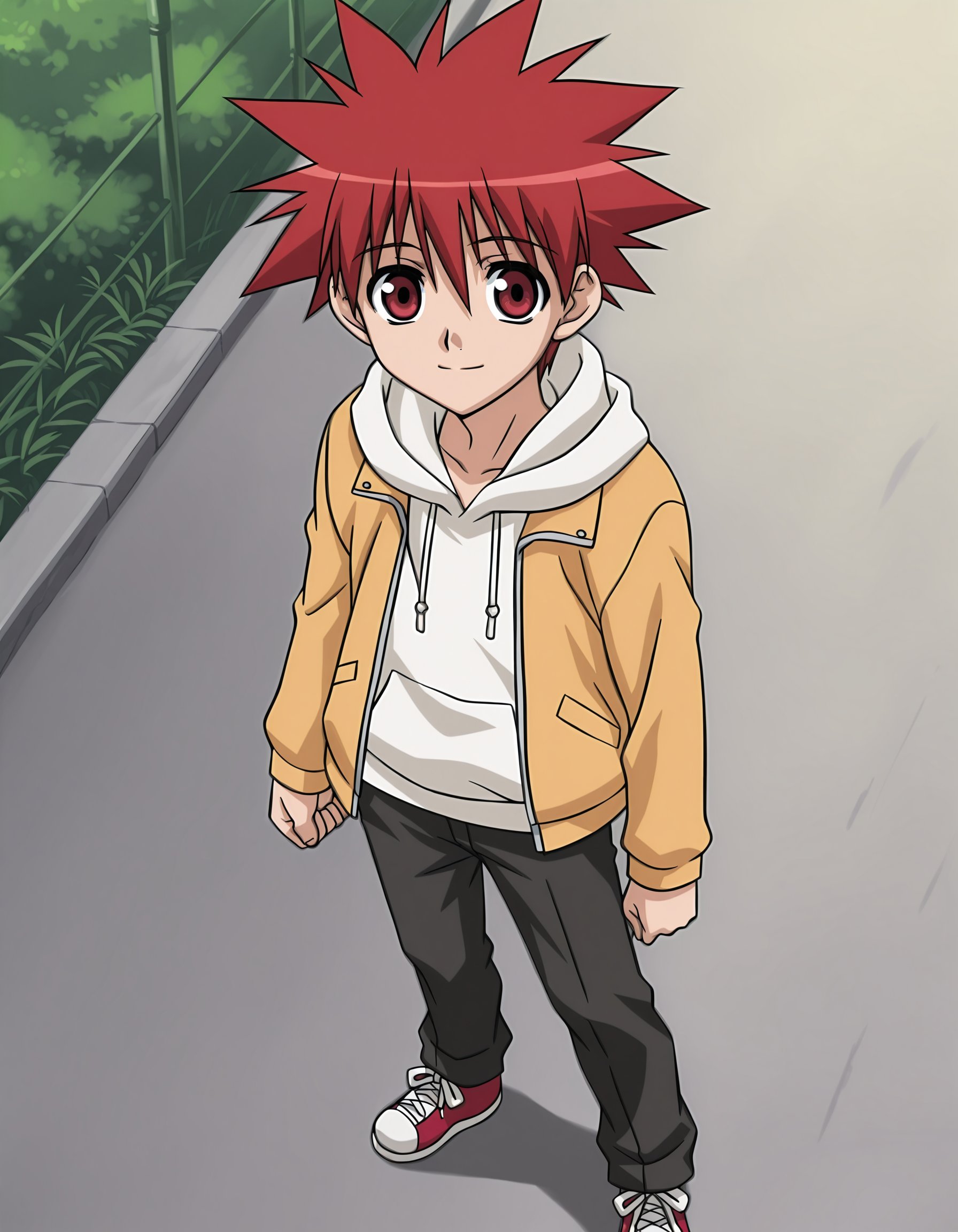 Trigger Words :daisuke niwa, red hair, red eyes, spiked hair, short hair, 1boy, male focus