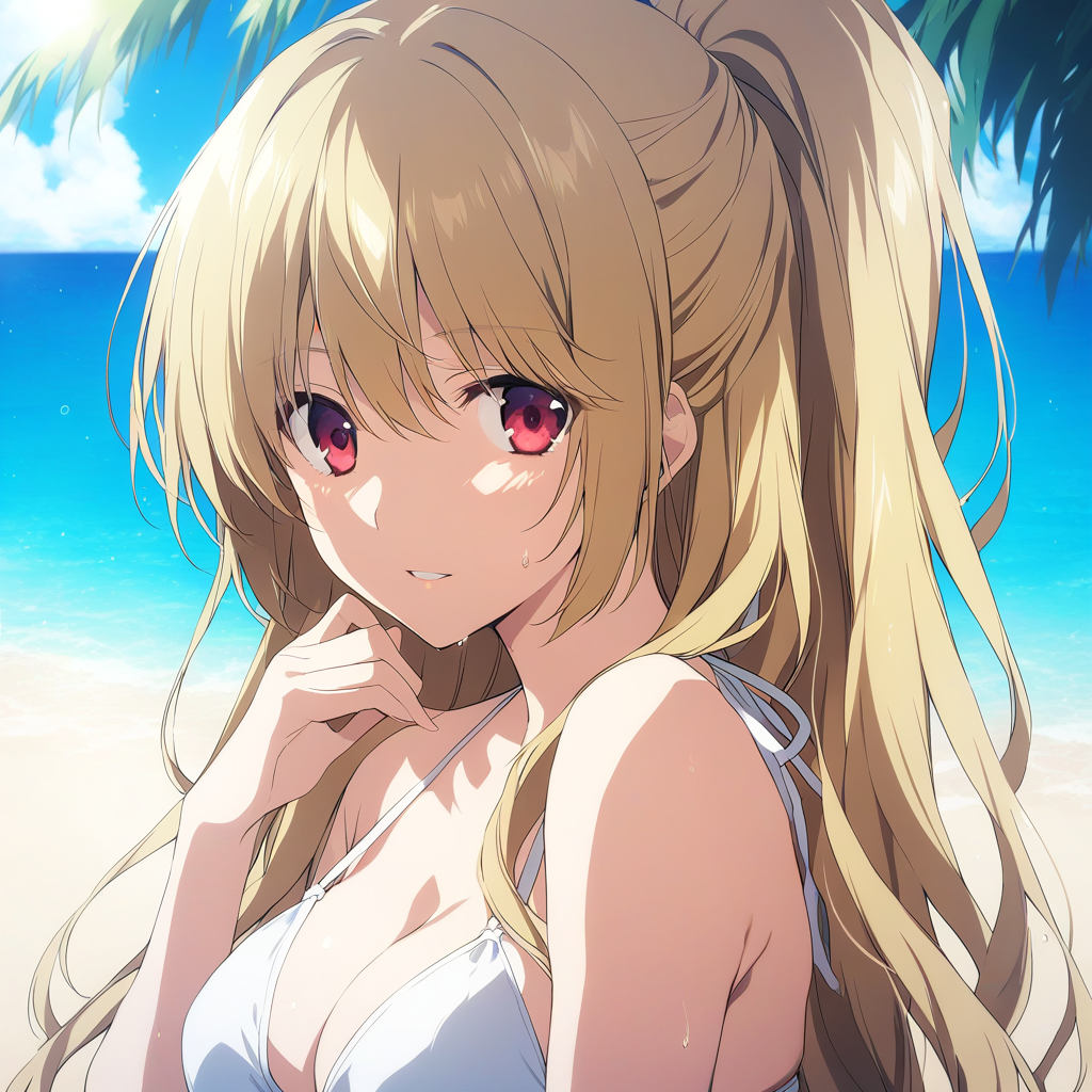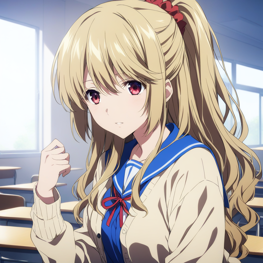 Main trigger words: aiba_asagi, long hair, blonde hair, hair ornament, red eyes, ponytail