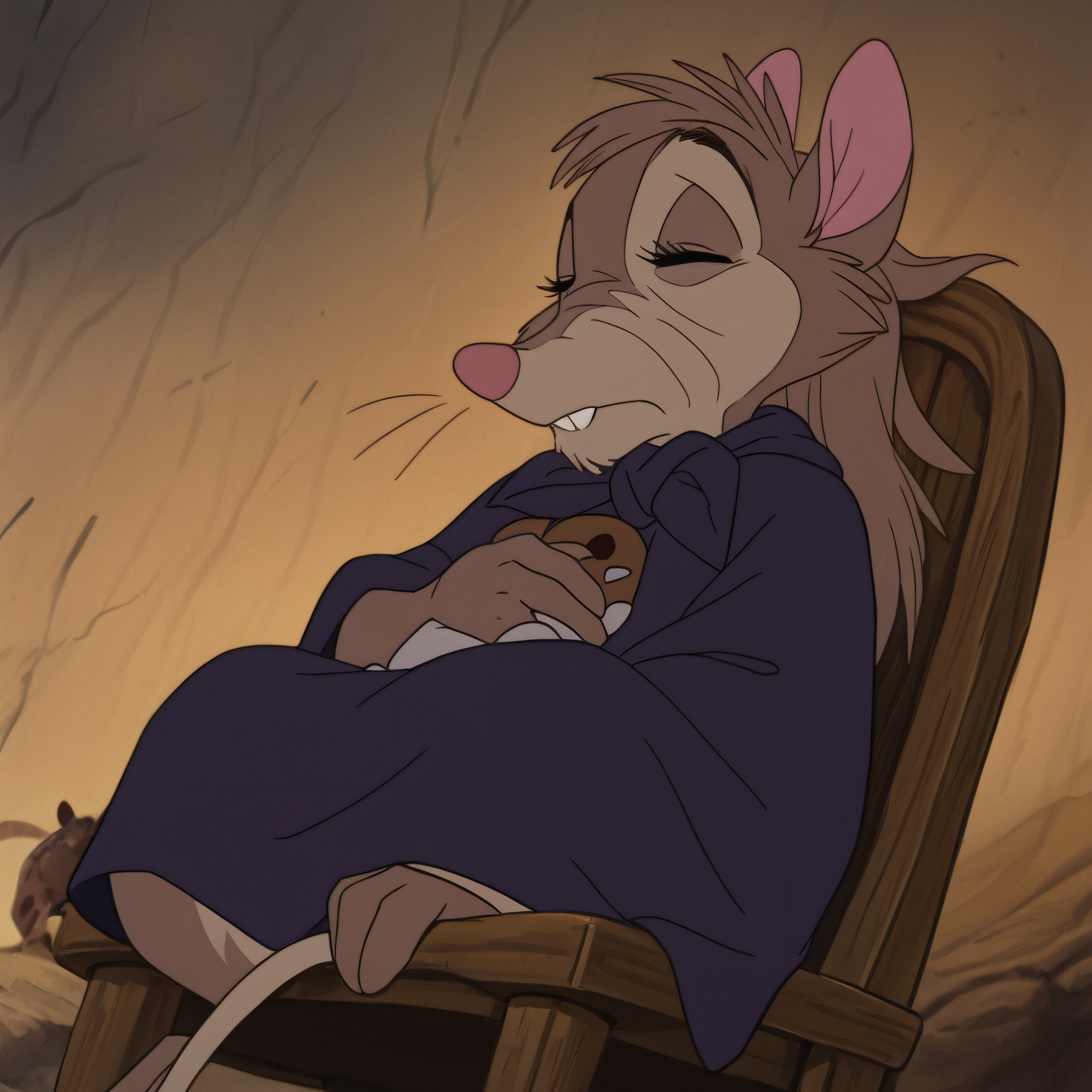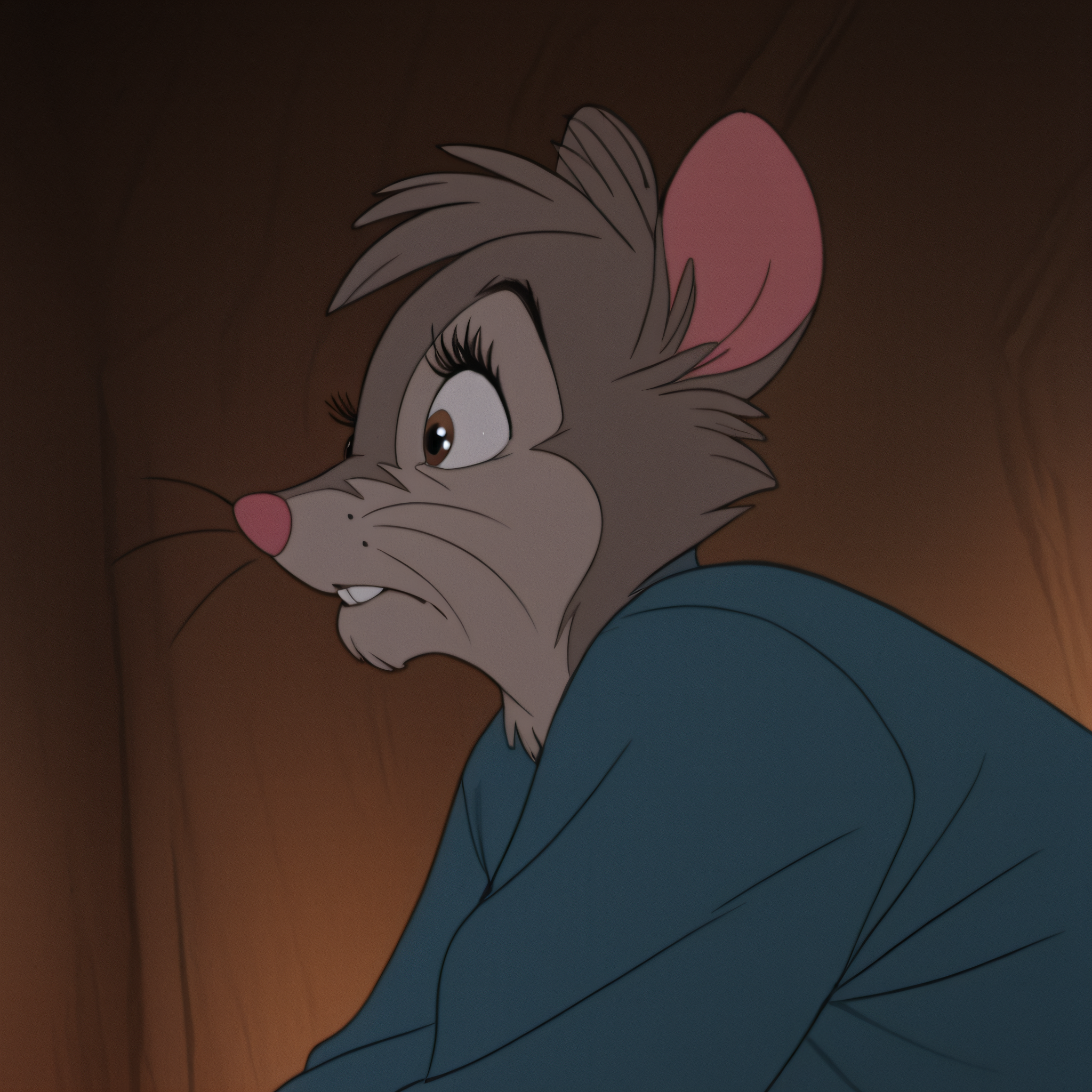 This LoRA is inspired by the richly atmospheric 1982 animated film The Secret of NIMH, directed by Don Bluth. It captures the dark fantasy tone, lush hand-drawn animation style, and the richly detailed environments of the movie. The LoRA emphasizes dramatic lighting, anthropomorphic animal characters (particularly mice, rats, and birds), enchanted objects, and a mysterious, moody color palette.
