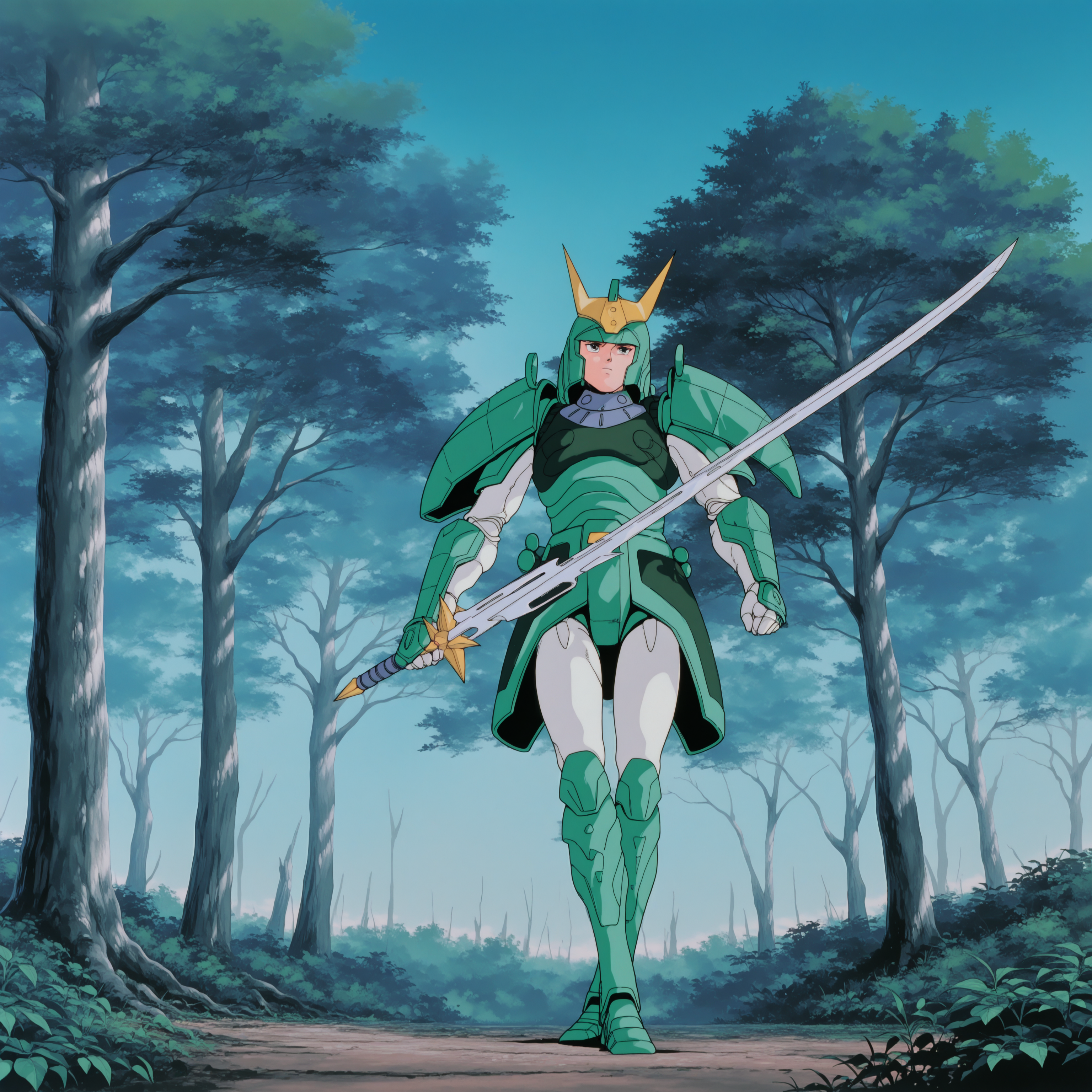 I think this one came out very well. The prearmor and armor seem very spot-on. The biggest weakness is the sword. It seems the blade design near the hilt is very hard for the LoRA to figure out.